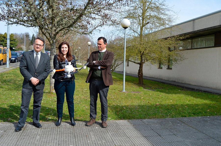 The celebration of the seminars about drones creates a great opportunity to demonstrate the research and technology potential that Campus Terra has to offer towards the development and future implemented actions created by the air-transportable research at Rozas, as stated by the Vice Rector Javier Bueno, the director of EPS Tomás Cuesta, and the USC Campus Terra professor and territorial delegate for the School of Engineers, Geomatics and Topography in Galicia, María José Iniesto.