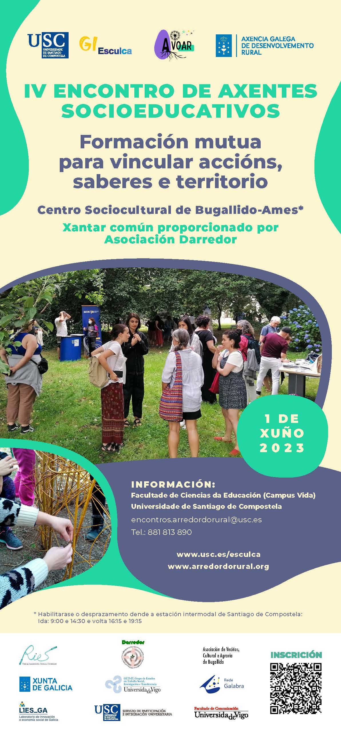 - In the afternoon there will be a round table on different ways of creating community processes that can be applied to different areas: energy communities (Amigas de la Tierra), social currency (A Sabia Moeda Galega), the participatory Art-Part festival (Autumn) and forest communities (Eco-social laboratory of O Barbanza).
