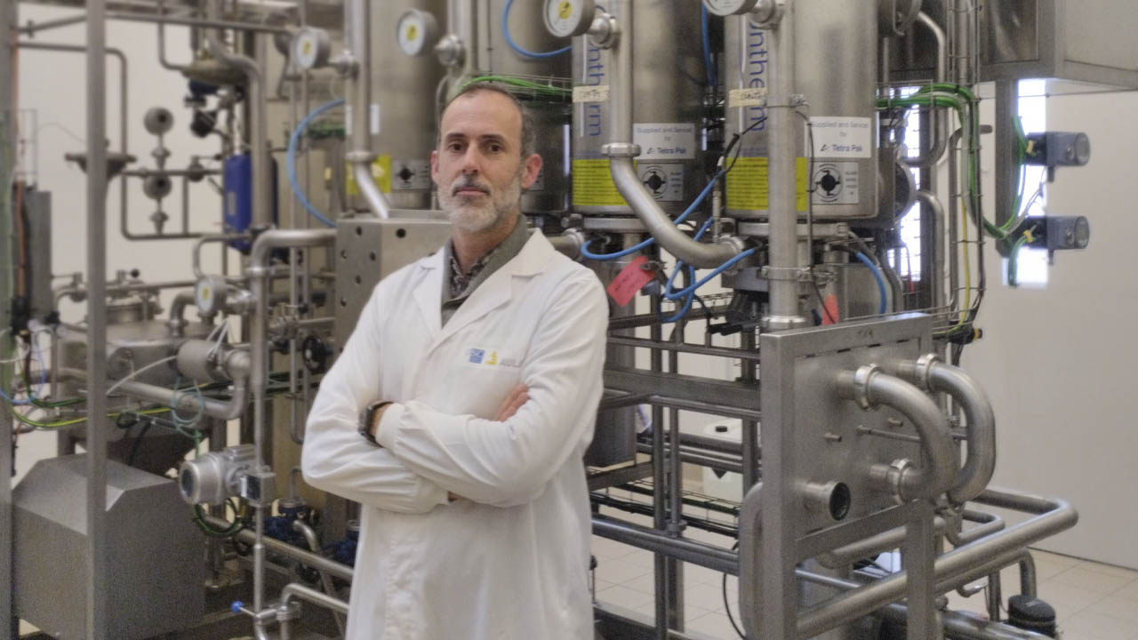 El día a día de Luis Aldeanueva, natural de Ourense, abarca multitud de ámbitos: la microbiología alimentaria y control de calidad, las tecnologías de filtración tangencial, los procesos de transformación de licuados y fermentados vegetales, los productos evaporados y pasteurizados… El investigador, además, participa en el desarrollo de alimentos lácteos presentes en cualquier hogar, como yogur, quesos, helados, mousses o mantequillas.
