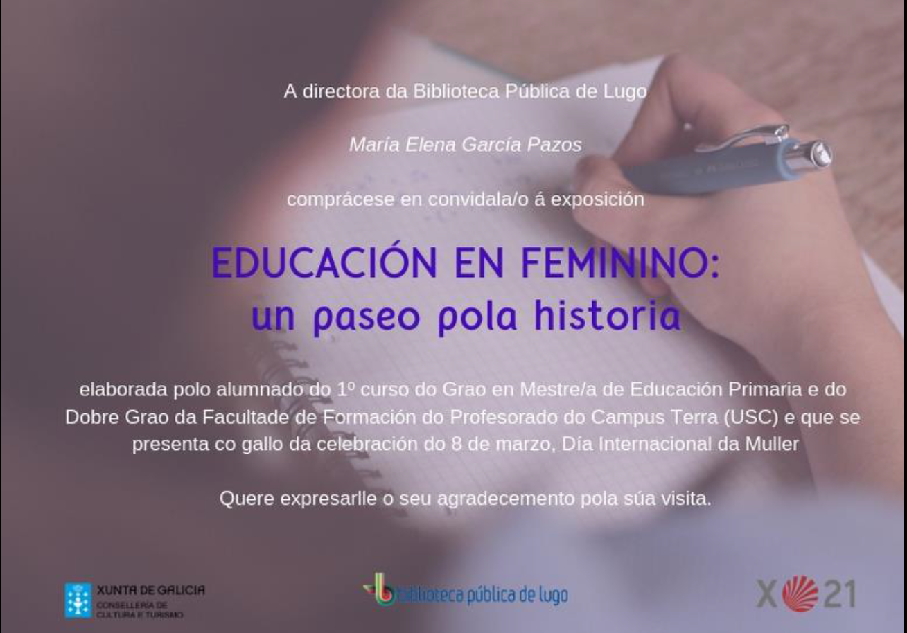 O vestíbulo da Biblioteca Pública de Lugo acolle ata o 17 de marzo, co gallo da celebración do Día Internacional da Muller este venres 8 de marzo, a exposición ‘Educación en Feminimo: un paseo pola historia’ verbo das mulleres educadoras máis sobranceiras na historia de Galicia e de todo o mundo.