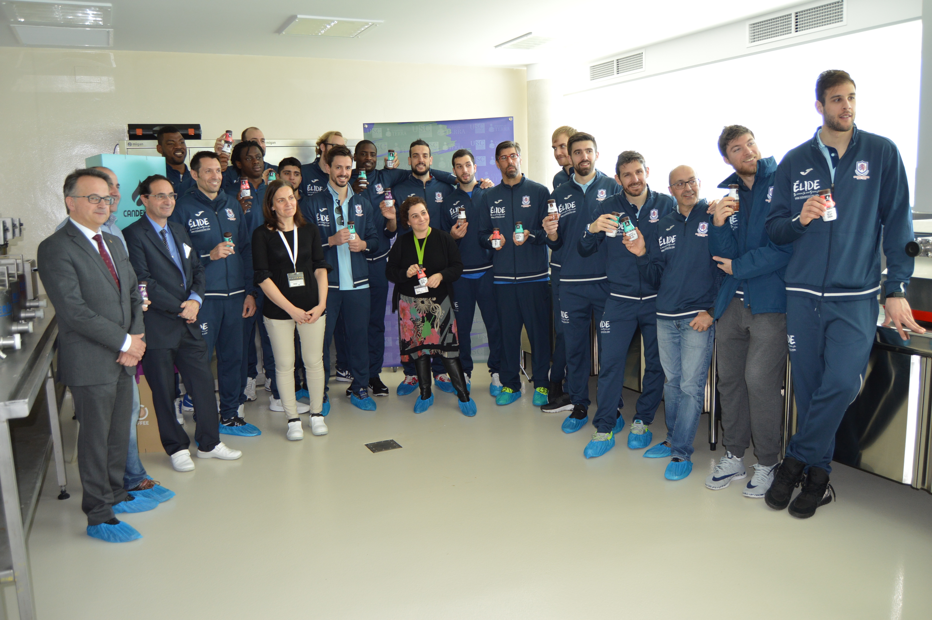 El vicerrector de Coordinación del campus de Lugo, Javier Bueno Lema, y el director del APLTA, Enrique Arbones, guiaron al equipo de baloncesto durante su visita por la plataforma tecnológica del Campus Terra. A continuación, la responsable de Comunicación de Cafés Candelas, Reyes Vidal, presentó los distintos tipos de café de la gama Ébo a los jugadores, haciendo especial hicapié en el último producto que acaban de sacar al mercado, una variedad de café latte sin lactosa, azucres añadidos y cero por ciento de materia grasa.