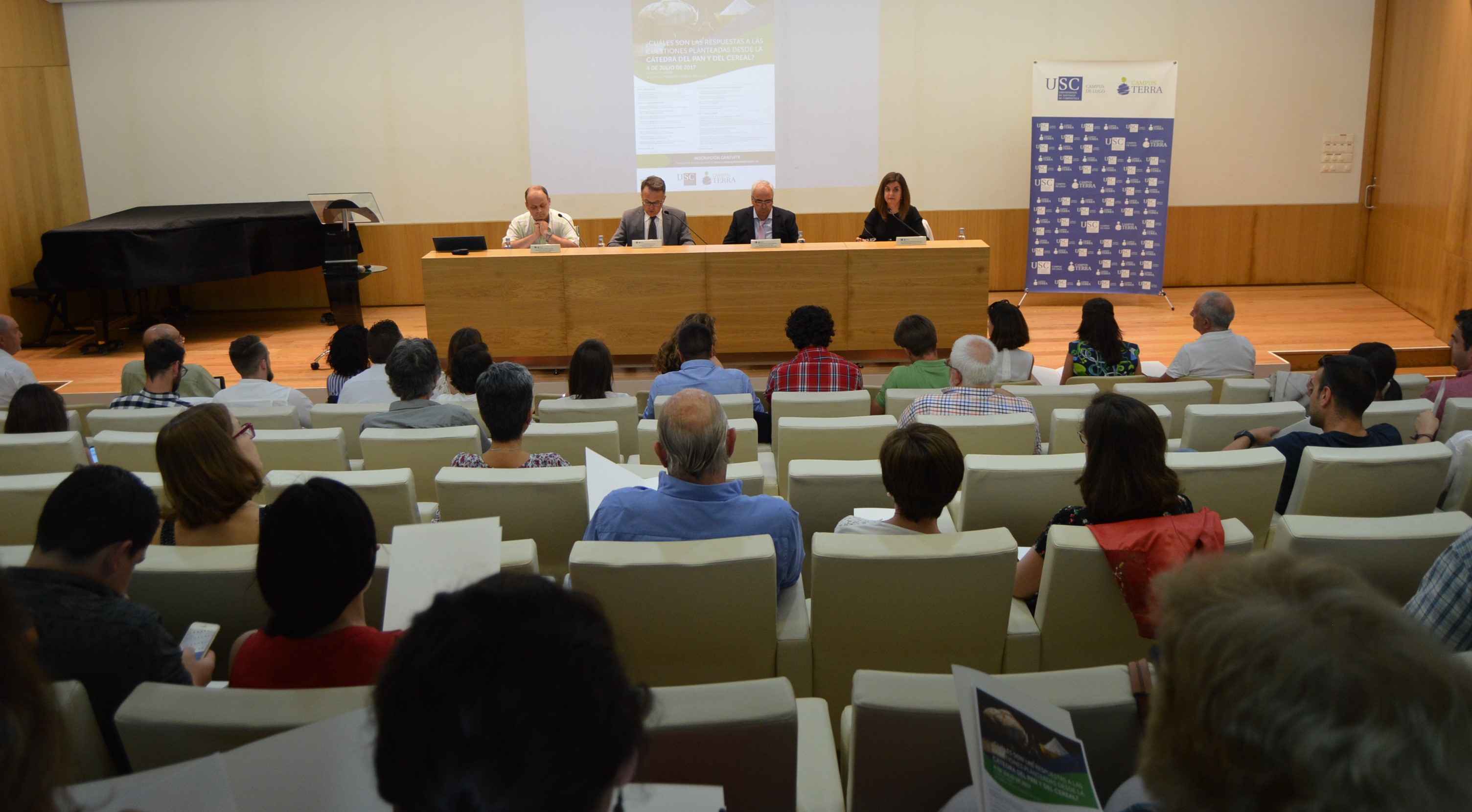 La Cátedra del Pan y del Cereal del Campus Terra de la USC celebró este martes en la Casa do Saber de Lugo, un foro abierto en el que distintos ponentes trataron de responder a algunas de las cuestiones que centran la actividad y el cometido de la primera cátedra científica ligada al Campus Terra de la USC, una iniciativa que cuenta con financiación del grupo Panadería Da Cunha y que cumple su primer año de vida.