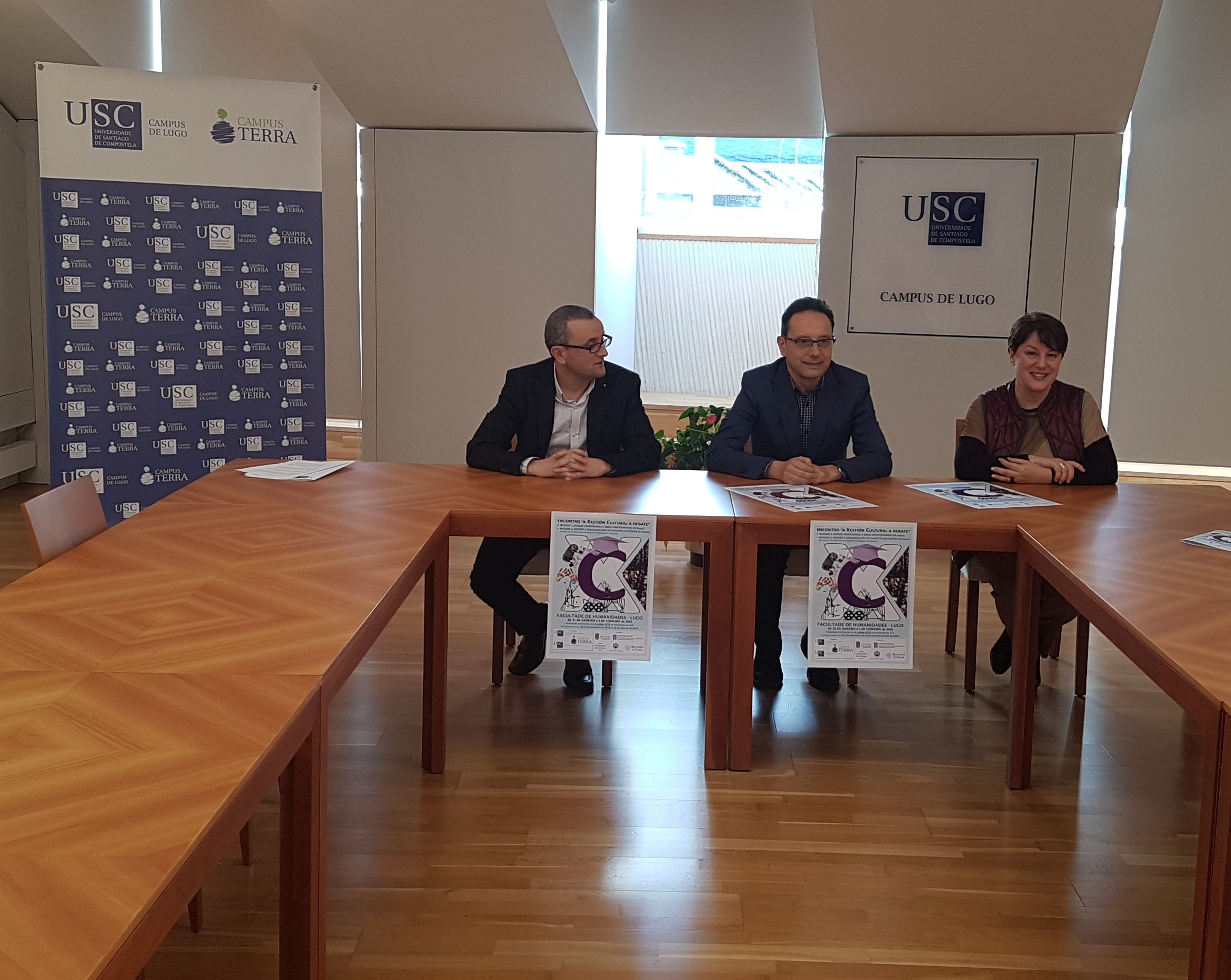 O Adxunto á Vicerreitoría de Coordinación do Campus de Lugo para Estudantes, Internacionalización, Cultura e Servizos, Jesús Varela Zapata; a decana da Facultade de Humanidades, María Isabel González Rey; e o vicedecano e coordinador da actividade, Gonzalo Francisco Fernández Suárez, presentaron este mércores na sala de prensa do edificio de Vicerreitorías o encontro 'A Xestión Cultural a debate', cuxo prazo de inscrición pode formalizarse ata o 22 de xaneiro premendo nesta ligazón.