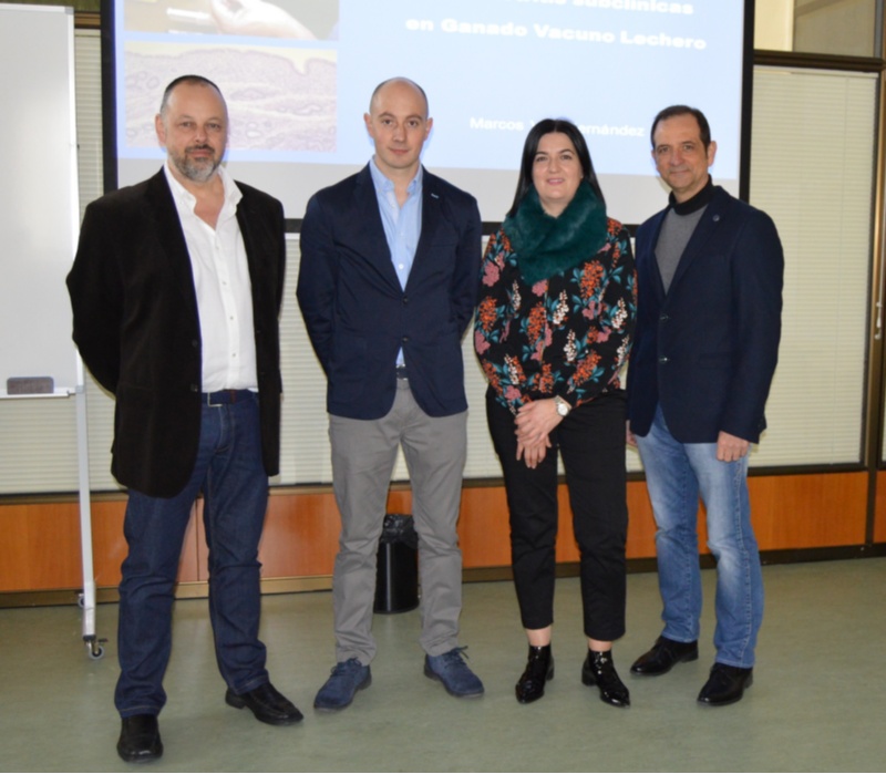 El profesor del Departamento de Patología Animal en la Facultad de Veterinaria de la USC, Pedro García Herradón, presidió el tribunal encargado de evaluar la tesis de doctorado presentada por Marcos Vigo, quien recibió la calificación de sobresaliente cum laude. El profesor del Departamento de Patología Animal de la Universidad de Córdoba Carlos Carmelo Pérez Marín y Juan Caínzos Cagiao, consultor técnico de rumiantes de Elanco, completan la relación de miembros del tribunal.