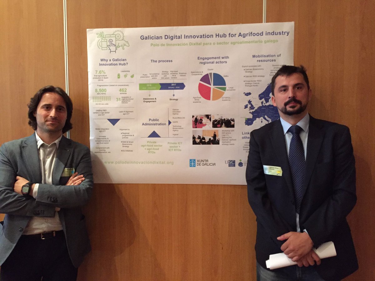 Tomando como partida la situación actual de Galicia en la que el agroalimentario se erige en un ámbito clave para la economía de la comunidad, Pérez Freire y Ribas Álvarez expusieron un panel en el que resumieron las sinergias establecidas hasta ahora en el seno del Polo, el cual participa en los partenariados temáticos 'Trazabilidad y Big Data' y ‘Agricultura de Alta Tecnología’, áreas dentro de la plataforma de especialización inteligente S3P Agrifood de la Comisión Europea. Asimismo, se pusieron de manifiesto los avances obtenidos en los talleres celebrados y dirigidos a recoger contribuciones de todos los agentes de la cadena de valor e innovación en el sector agroalimentario y en el sector TIC, incluyendo a representantes de cooperativas e industrias, clústers y asociaciones empresariales, miembros de centros tecnológicos y grupos de investigación, representantes de empresas TIC, así como técnicos de la administración pública involucrados en la innovación de este campo.