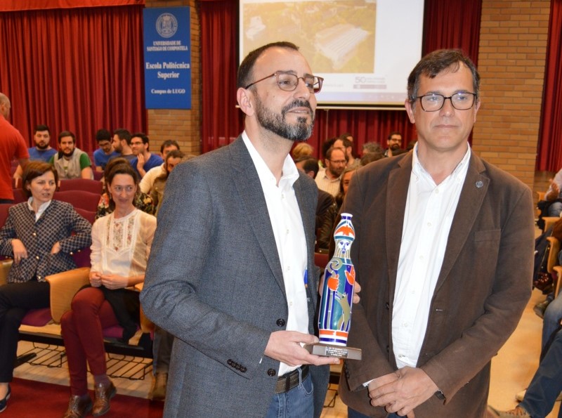 Una vez terminado el turno de intervenciones, los profesores en la EPS de Ingeniería y directores de los departamentos de Producción Vegetal y Proyectos de Ingeniería, Martín Barrasa, e Ingeniería Agroforestal, Pablo Vila Lameiro, entregaron su respectivo certificado de agradecimiento a Manuel Cruz, que también recibió como regalo un figura de cerámica de manos de Tomás Cuesta.