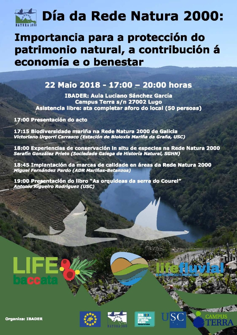 El Instituto de Biodiversidad Agraria y Desarrollo Rural (IBADER) del Campus Terra de la USC celebrará este martes 22 de mayo, a las 17.00h, el Día de la Red Natura 2000 con la organización de una jornada en la que distintos ponentes pondrán en valor la importancia de la protección del patrimonio natural, así como de la mejora del grado de bienestar y de la economía.