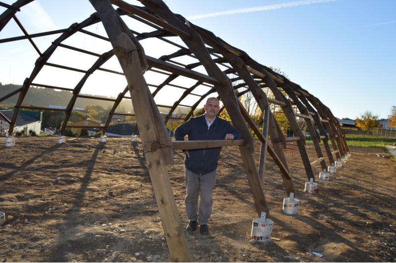 El diseño del invernadero es obra del equipo humano de Espiga, quien trabajó en esta actuación en estrecha colaboración con las empresas CasaBio y Decologic, que se ocupó de la aplicación de aceites y demás tratamientos adecuados para preservar la madera de una infraestructura cuyo esqueleto o armazón ya está montado sobre el terreno, gracias a la colaboración de personal voluntario, a la espera de una cubierta.
