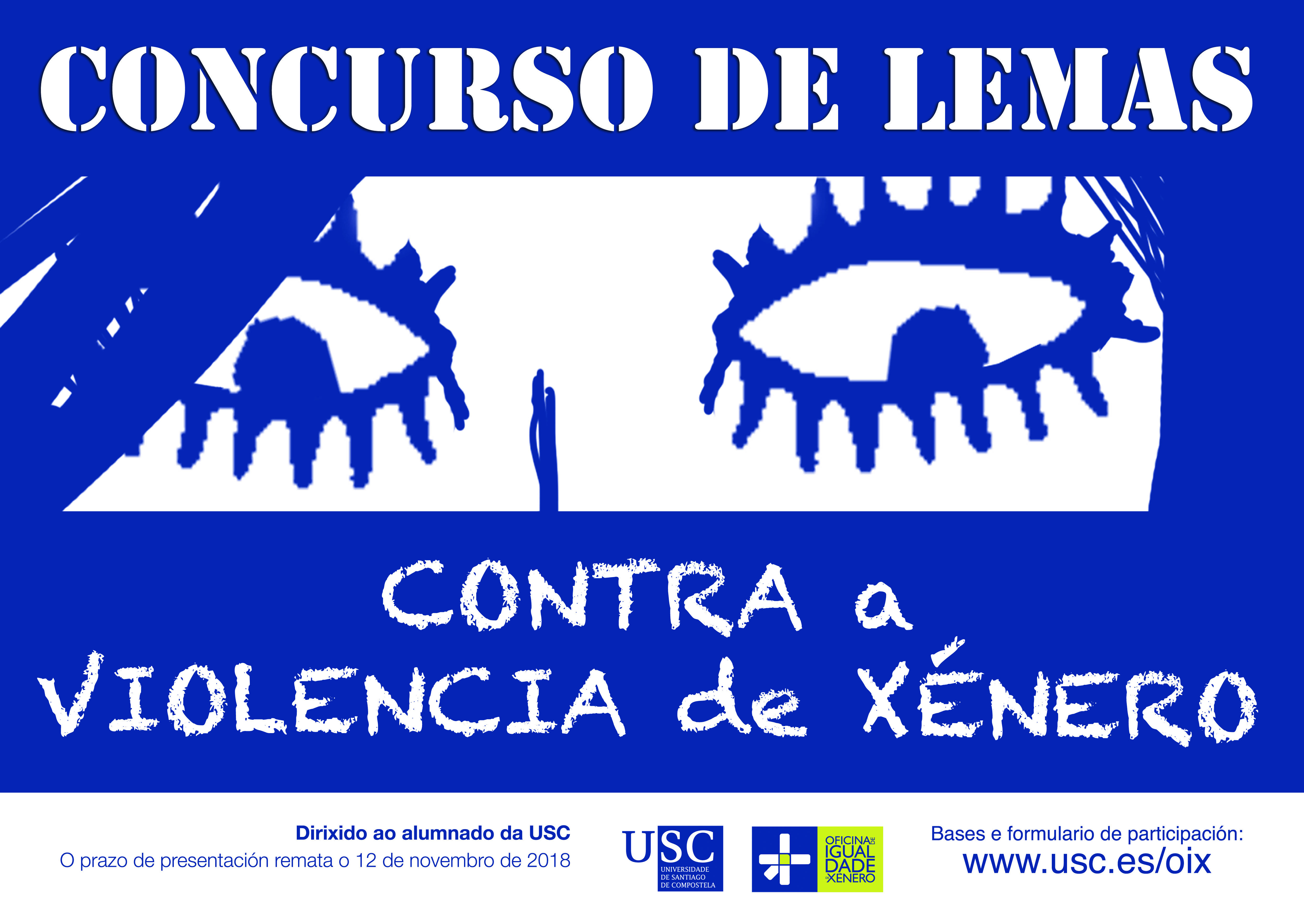 A Oficina de Igualdade de Xénero da USC vén de convocar o V Concurso de Lemas contra a Violencia de Xénero cuxo prazo de recepción de candidaturas remata este 12 de novembro e no que poden participar alumnos e alumnas da USC matriculados no presente ano académico.