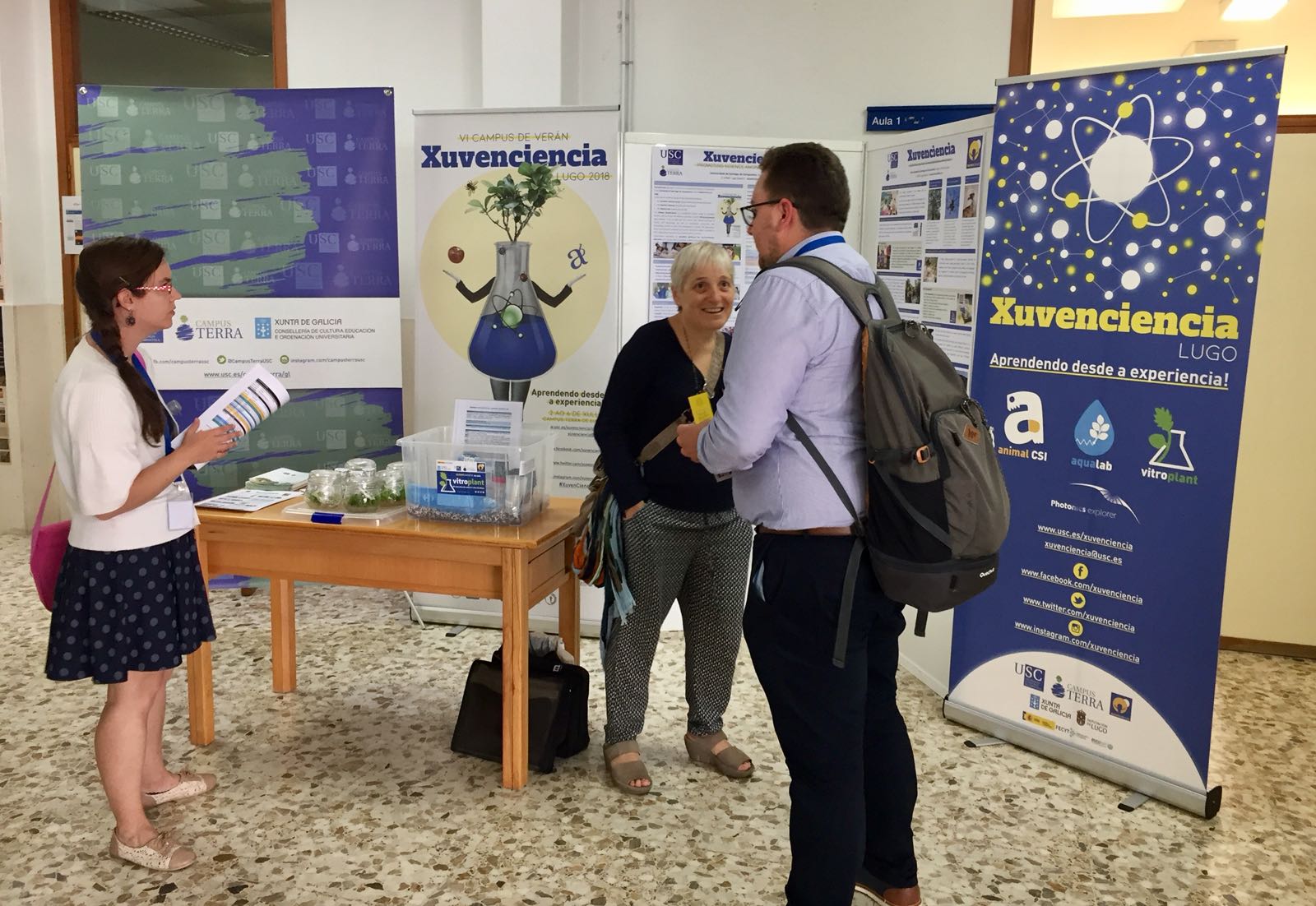 En el marco de este foro, el Grupo de Innovación Docente de la USC en el Campus Terra XuvenCiencia, disfruta de un espacio expositor en el que exhiben su actividad, entre la que destaca, la organización del campus científico de verano que cada año se viene celebrando en Lugo y que en su reciente sexta edición alcanzó la mejor preinscripción de su historia, así como la organización de jornadas específicas para formar a profesorado y crear vínculos y sinergias entre los distintos actores de la educación preuniversitaria y universitaria implicados en la divulgación de conocimientos científico-técnicos. Además, desde este stand, la organización de XuvenCiencia distribuye, entre las personas interesadas, el díptico oficial con la oferta docente del Campus Terra.