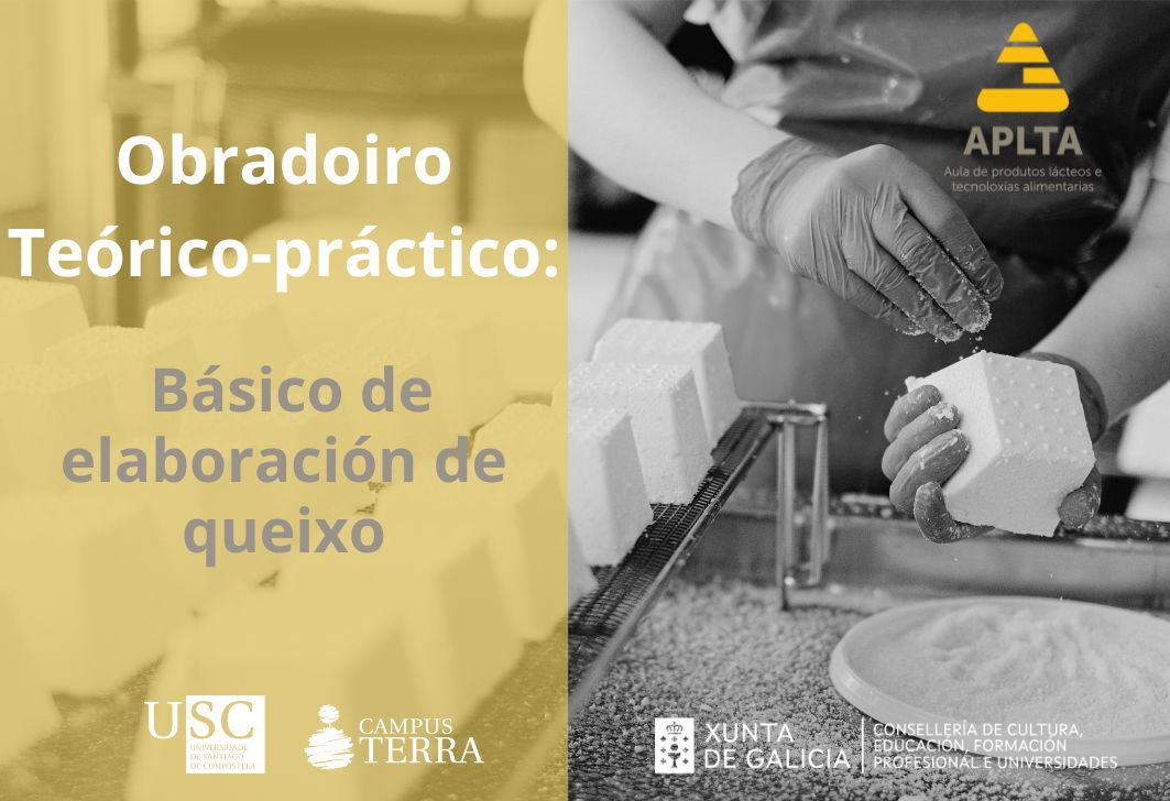 A Aula de Produtos Lácteos e Tecnoloxías Alimentarias (APLTA) do Campus Terra da USC celebra nas súas instalacións o 26 de outubro, a partir das 9.00 horas, un obradoiro básico de elaboración de queixo que inclúe formación teórica e práctica.