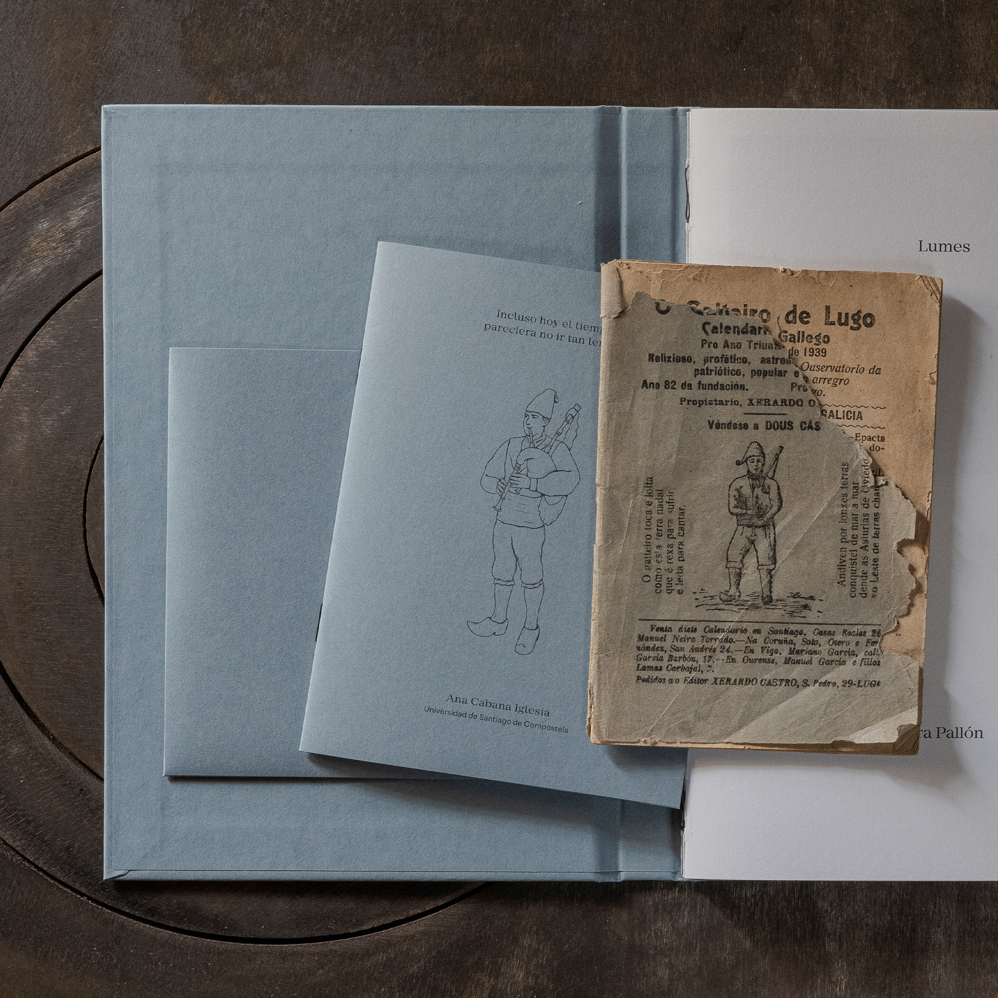 -Hai un punto moi importante a resaltar dentro de Lumes, que é un pequeno libro que se atopa dentro do libro propiamente dito. Está inspirado en ‘O Gaiteiro de Lugo’, un almanaque agrícola que se comezou a publicar a mediados do século XIX, e que estaba en todas as casas campesiñas. Pareceunos moi interesante incluír os nosos textos neste formato porque o almanaque poñía en valor a cultura. Unha cultura que foi atacada por certos intereses.