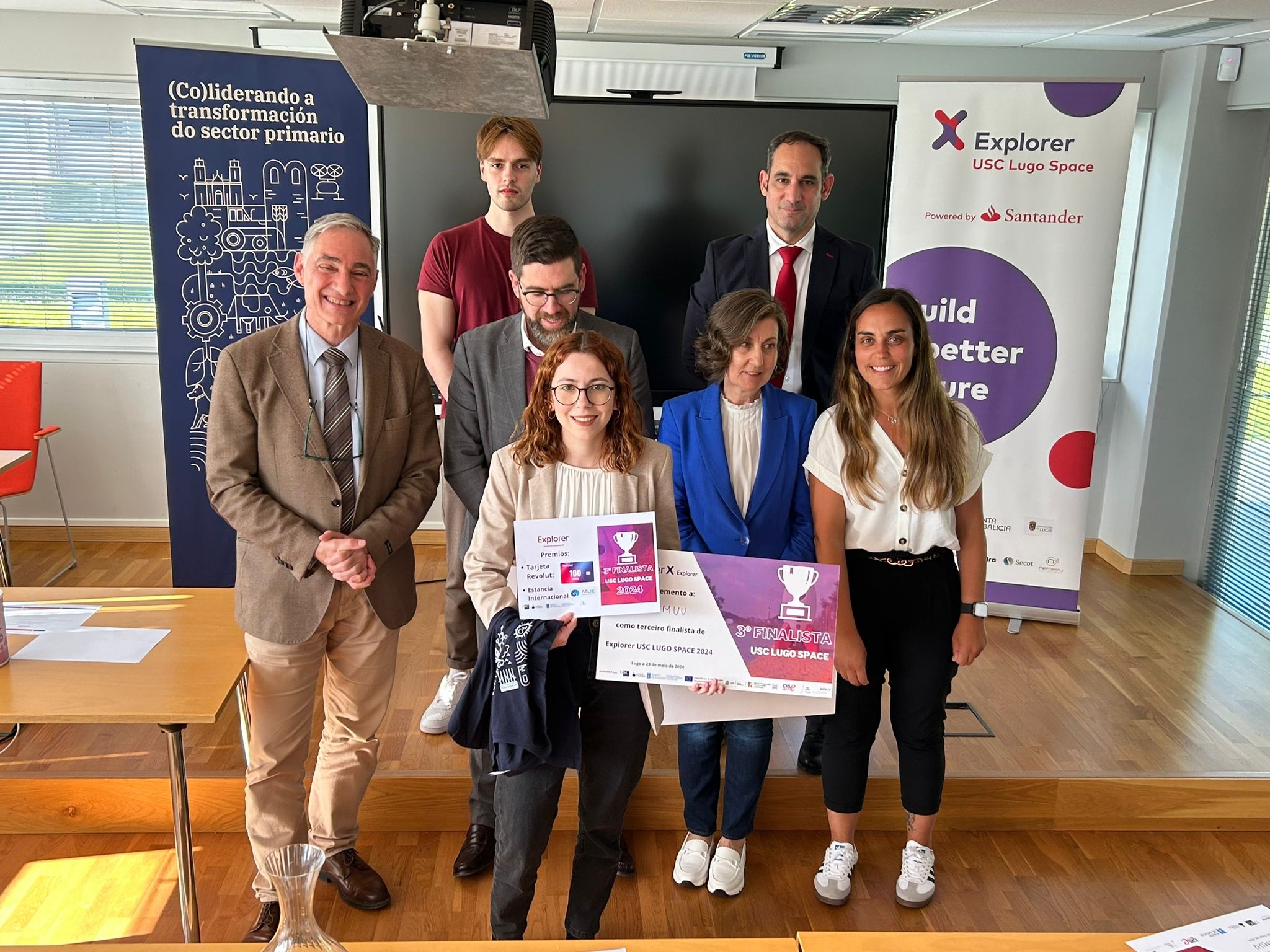 Finalmente, o terceiro posto foi para Optimuu de Aina Mena, unha interface personalizable para control e xestión de explotacións lácteas que inclúe un modelo preditivo. A través de Intelixencia Artificial e matching learning permite a visualización e interpretación de datos recompilados na automatización de procesos no sector gandeiro. Aina Mena tamén realizará unha estadía internacional grazas ao USC LUGO SPACE, alén de recibir 100 euros. Ademais, esta iniciativa foi seleccionada por un xurado global de Explorer 2024 como un dos 30 proxectos finais que recibirán formación en  crowfunding.