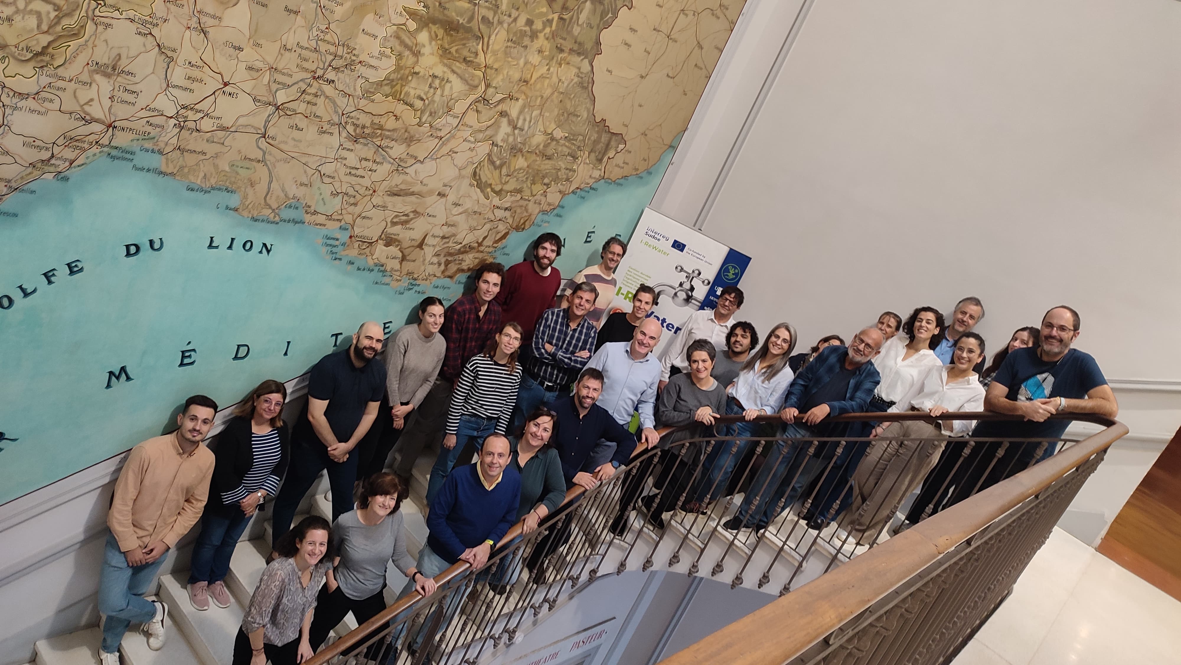 O consorcio de I-ReWater está integrado por 16 entidades líderes no seu sector do espazo SUDOE, tal e como se denomina a rexión formada polo territorio da Península Ibérica, Principado de Andorra e Sur de Francia. A Escola Politécnica Superior de Enxeñería da Universidade de Santiago de Compostela lidera este proxecto, no que tamén participan:  :  HOPEN – Terre de Houblon; Instituto de Ciencias de la Vid y el Vino (ICVV); Instituto Nacional de Investigação Agrária e Veterinária (INIAV, IP); Fundación Juana de Vega; Universidade de Trás-os-Montes e Alto Douro; Instituto Politécnico de Bragança; IRTA (Instituto de Investigación y Tecnología Agroalimentarias de Cataluña); Universidad de Córdoba (UCO), Águas do Norte, S.A., INRAE (Instituto Nacional de Investigación para la Agricultura, la Alimentación y el Medio Ambiente de Francia); Agencia de Medio Ambiente y Agua de Andalucía (AMAYA); GESTAGUA, Àrea Metropolitana de Barcelona (AMB), Oficina del Regant del Departament d’Acció Climàtica i Agenda Rural de la Generalitat de Catalunya (OdR) y Gobierno de Andorra.