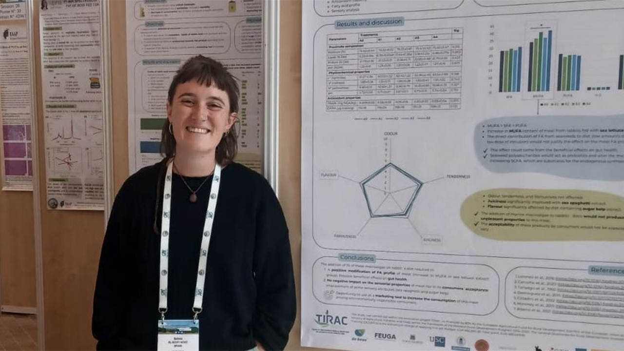 -Realmente cheguei a ela un pouco por casualidade. Inicialmente, os meus plans eran outros pero tiven a posibilidade de participar como apoio máis técnico no Grupo Operativo TIRAC, cuxo obxectivo era investigar técnicas innovadoras para reducir o uso de antibióticos en cunicultura, e a partir deste traballo realicei a tese neste ámbito. Sempre me interesou a produción animal, e sobre todo como facela de forma máis sostible a nivel medioambiental, e por iso me motivou o tema desta tese.