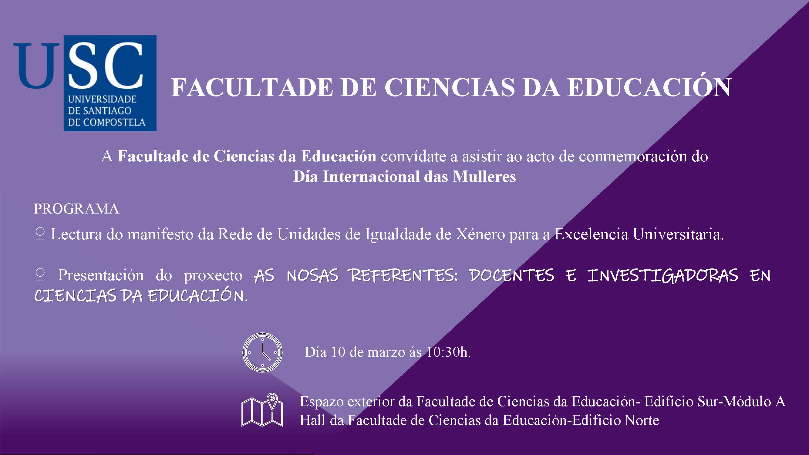 Acto de Conmemoración do Día Internacional das Mulleres, que terá lugar o vindeiro día 10 de marzo de 2025 ás 10:30 horas no espazo exterior da Facultade:
