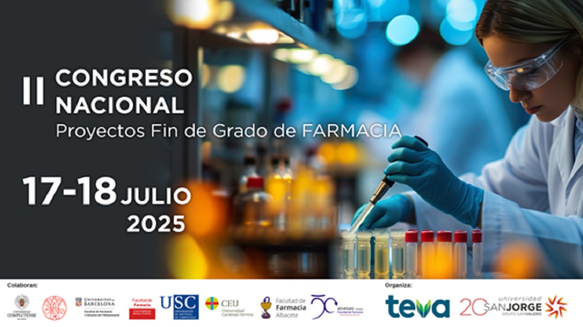A Universidade de Santiago de Compostela forma parte do comité científico do II Congreso Nacional de Proxectos Fin de Grao de Farmacia que terá lugar os días 17 e 18 de xullo en Zaragoza organizado pola Cátedra TEVA da Universidade San Jorge.