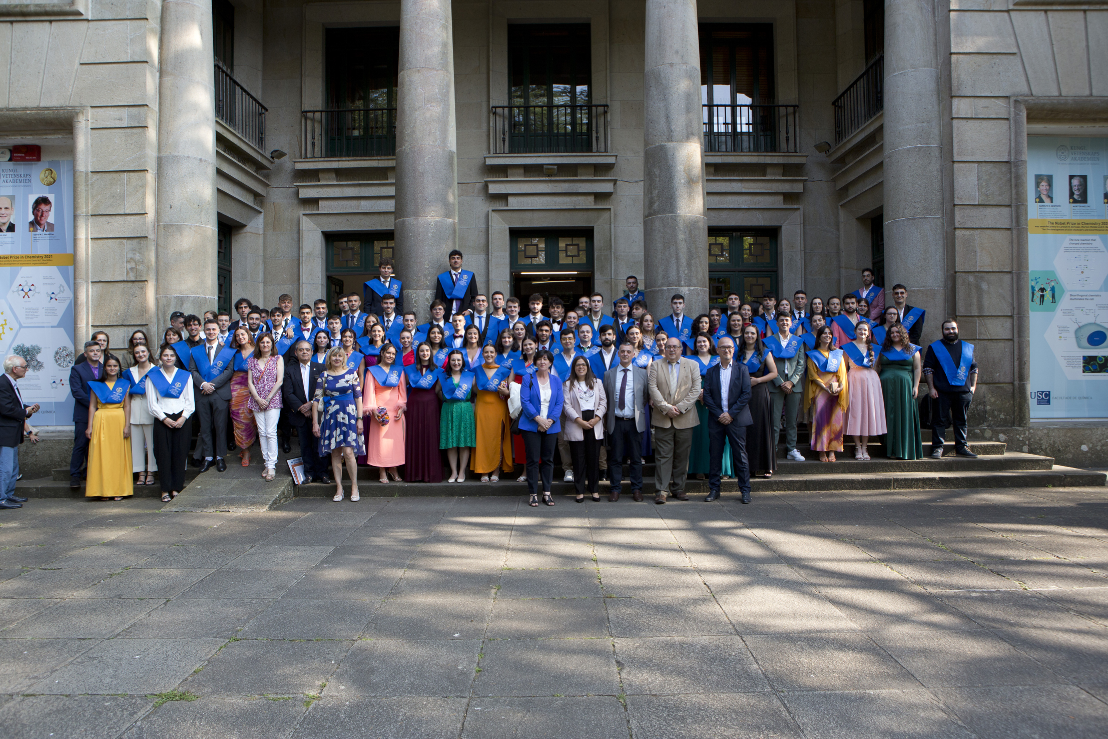 O evento estivo presidido polo Vicerreitor de Política Científica, don Vicente Pérez Muñuzuri e contou tamén coa presenza do decano da Facultade de Química, don Jesús Sanmartín Matalobos, o vicedecano da Facultade de Bioloxía, don Francisco Javier Salgado Castro, o decano-presidente do Colexio Oficial de Químicos de Galicia, don Manuel Rodríguez Menéndez, a madriña das promocións de Grao e de Dobre Grao, dona Matilde Fondo Busto, así como o padriño da promoción de Grao, don José Manuel Vila Abad.