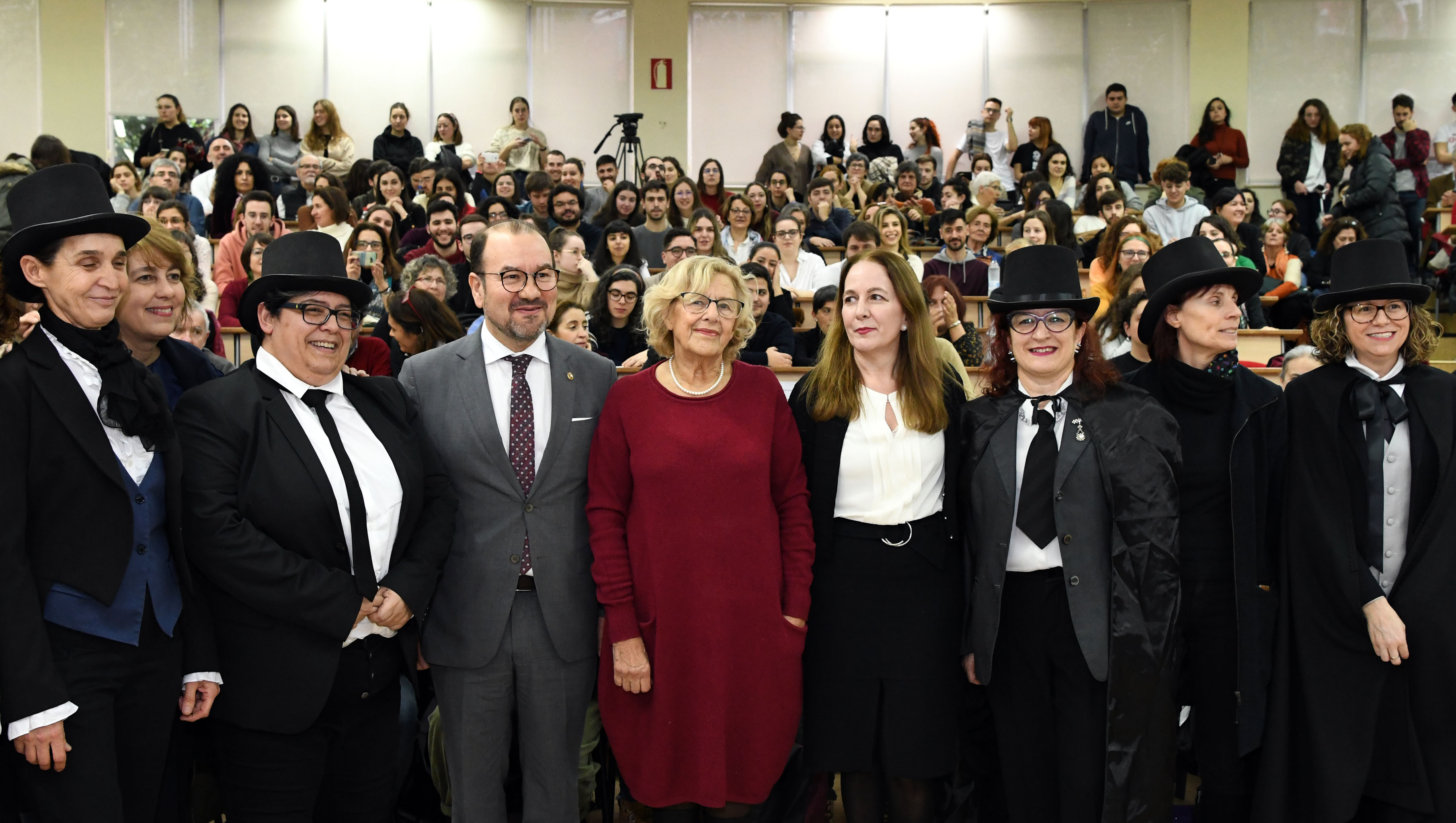 Ademais, tal e como xa sucedeu este xoves, alumnas e traballadoras da USC asistiron aos seus respectivos centros de traballo vestidas de home para poñer en valor a figura desta precursora do feminismo que se tivo que facer pasar por home para poder recibir formación universitaria. Este venres foi a quenda da Facultade de Medicina e Odontoloxía, onde unha ampla representación das mulleres do centro luciron garabata e chapeu para lembrar a Concepción Arenal.