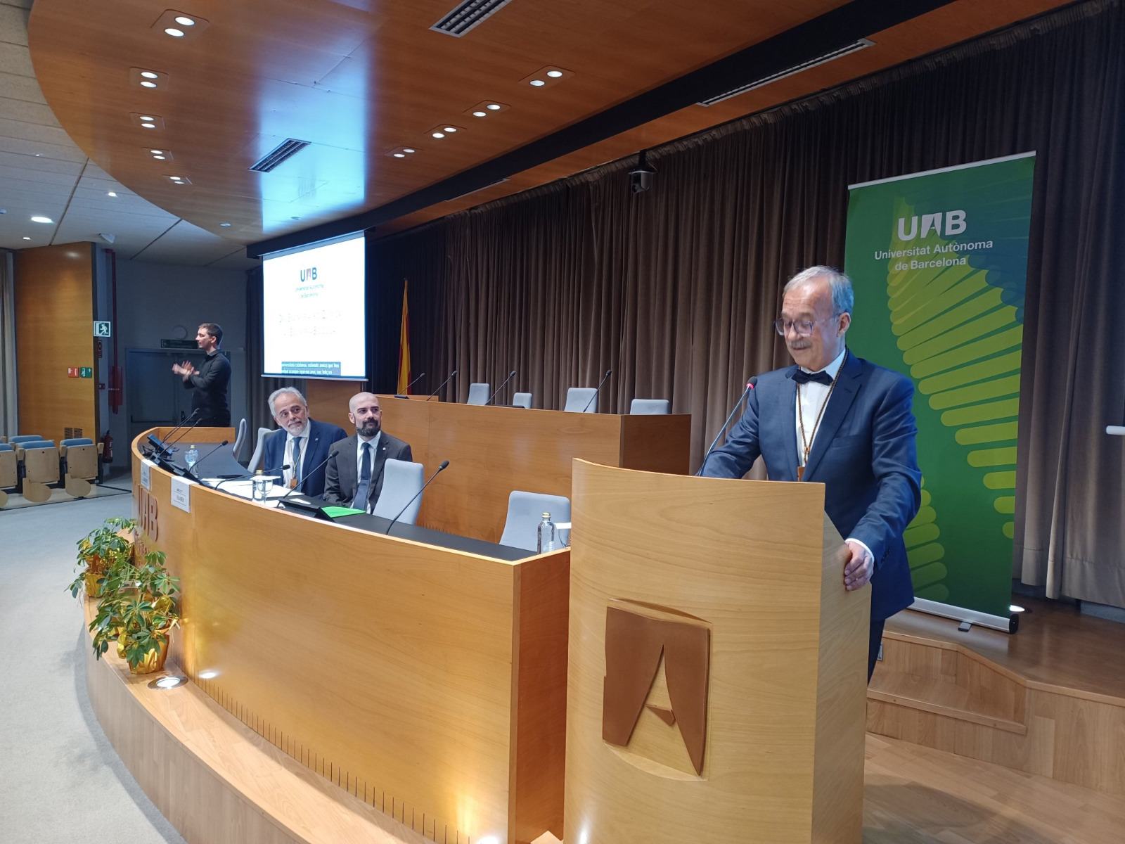 O Salón de Actos do Reitorado acolleu o acto de investidura de Juan Manuel Lema, referente no estudo da enxeñaría ambiental, como doutor honoris causa da Universidad Autónoma de Barcelona (UAB).