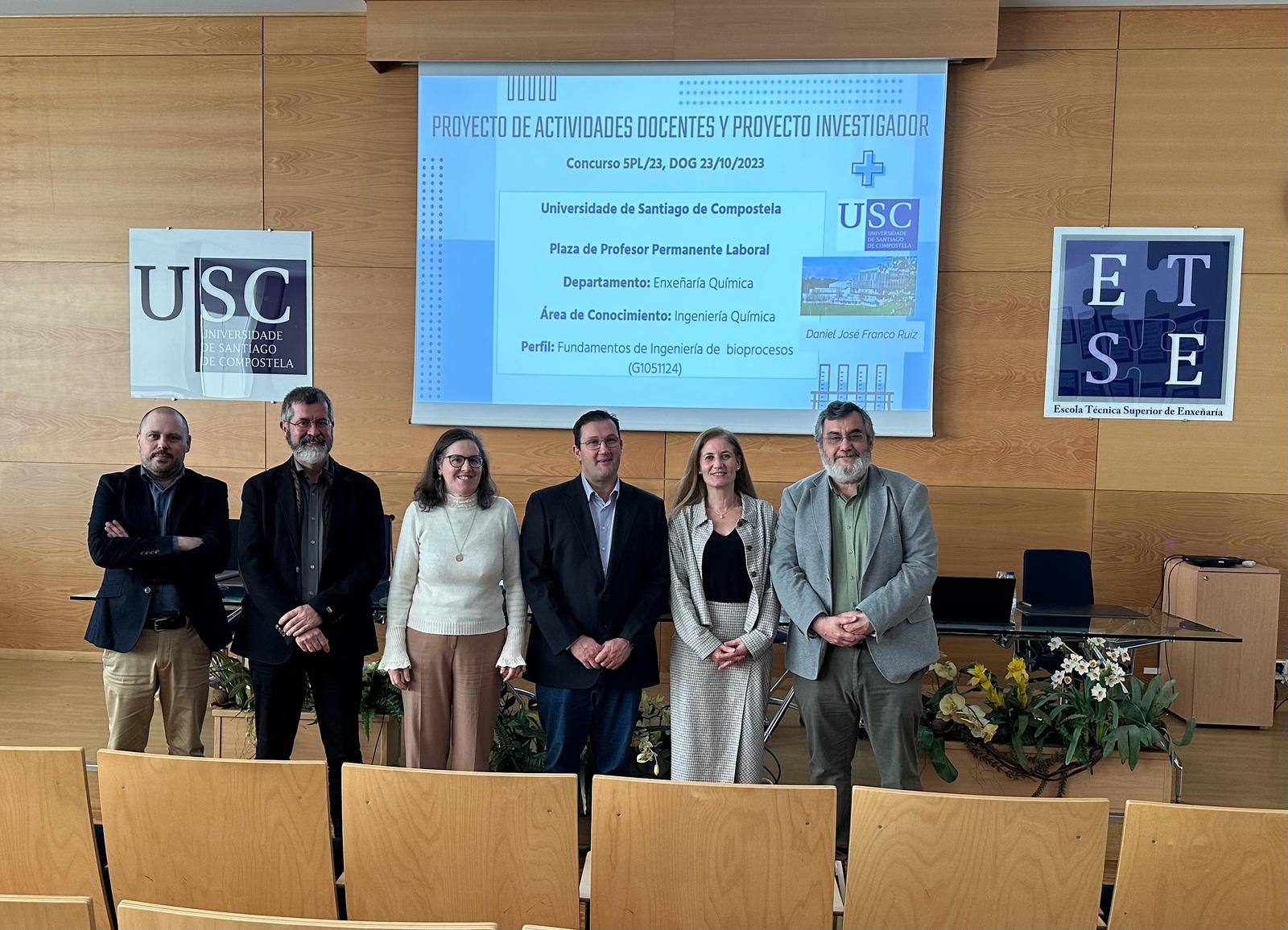 Durante os días 23 e 25 de xaneiro de 2024 levaronse a cabo as distintas actividades relativas á praza de profesor permanente laboral, na cal o profesor axudante doutor do departamento de Enxeñaría Química da USC, Daniel Franco, atinxiu a puntuación suficiente para ser proposto pola comisión para o seu nomeamento.