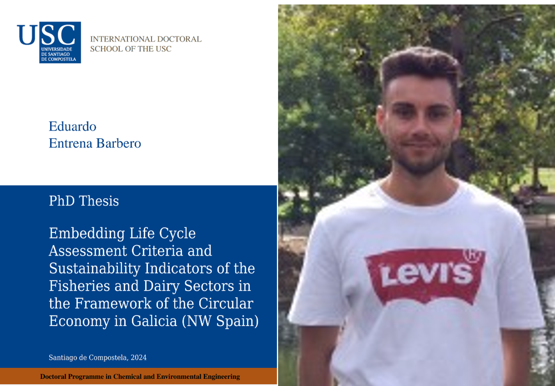 Infórmase que o vindeiro luns 1 de xullo ás 11:00 horas terá lugar no salón de actos do Instituto de Investigación do Medio Acuático para unha Saúde Global da USC (antes denominado Instituto de Acuicultura) a presentación e defensa semipresencial da tese doutoral de Eduardo Entrena Barbero titulada “Embedding Life Cycle Assessment criteria and sustainability indicators of the Fisheries and Dairy Sectors in the framework of the Circular Economy in Galicia (NW Spain)”. Tese dirixida pola Dra. María Teresa Moreira Vilar e a Dra. Sara González García.