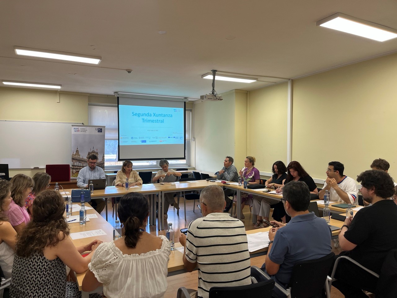 O equipo da Universidade Europea para o Benestar (EUniWell) na USC celebrou a súa segunda reunión trimestral do ano para avaliar os avances acadados nos distintos paquetes e grupos de traballo do proxecto EUniWell-WeFF durante o primeiro semestre de 2025, así como planificar a valorar as accións prioritarias do seguinte período.