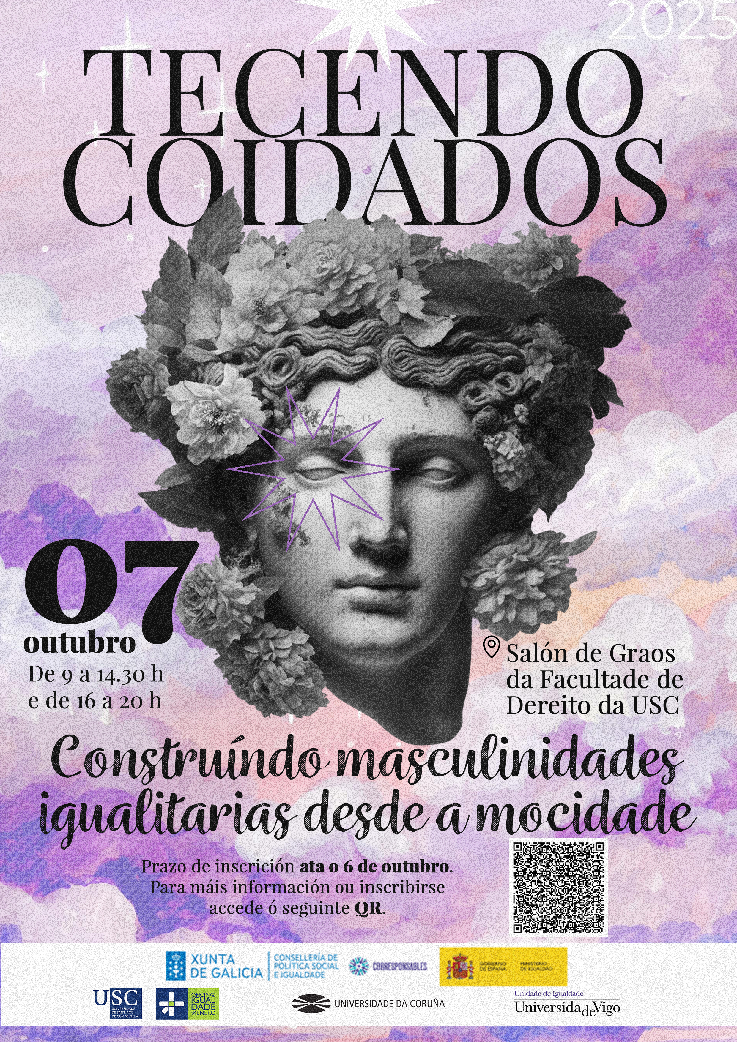 Con esta xornada, organizada polas 3 Universidades galegas e realizada ao abeiro do Plan Corresponsables 2025, preténdese poñer no centro o valor dos coidados e a construción de masculinidades igualitarias entre a mocidade, evitando seguir reproducindo relacións de poder que impiden avanzar hacia sociedades máis xustas e inclusivas.