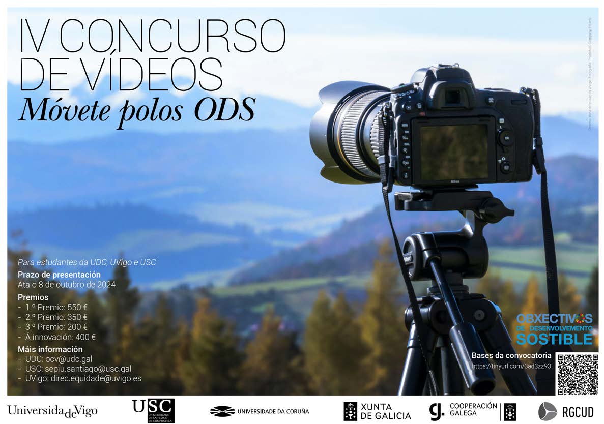 A Rede Galega de Cooperación Universitaria ao Desenvolvemento (RGCUD), convoca o IV Concurso de vídeos “Móvete polos ODS”, co obxectivo de dar a coñecer os Obxectivos de Desenvolvemento Sostible (ODS) de Nacións Unidas.