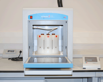 Microondas de 1600 watts con control de temperatura e presión en todos os vasos mediante IR e control directo de presión e temperatura no vaso de referencia.