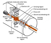 Nesta técnica, a enerxía empregada para ionizar a mostra e provocar a súa fragmentación é adquirida pola interacción con electróns libres emitidos dende un filamento de metal quentado electricamente. A cámara de ionización é mantida a baixa presión para minimizar as colisións ión-molécula. É unha técnica de ionización das chamadas “duras”, xa que as moléculas en fase gas nunha fonte de alto baleiro, reciben un bombardeo de electróns de alta enerxía que as fan fragmentar. Debido a isto obtense un espectro con moita fragmentación do ión molecular, dando moita información estrutural e moi pouca ou ningunha información molecular. Grazas a dita fragmentación pódese deducir o patrón de fragmentación da molécula analizada.
