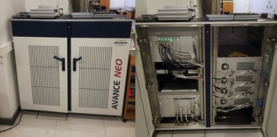 Consola Avance-NEO: Equipada con 3 canles de radiofrecuencia e deuterio. Gradiente PFG en eixe Z. Amplificadores de alta potencia de 1 Kw, 1Kw e 500 W. Xeradores de forma de onda para pulsos selectivos. Control de temperatura VT. Dispón dun automostreador refrixerado para 24 mostras para experimentos de RMN en disolución.
