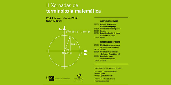 Xornadas de reflexión sobre a situación da lingua galega en diversos aspectos das matemáticas e a terminoloxía matemática.