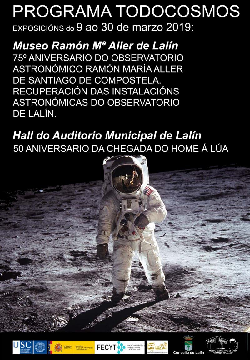 Coas mostras, que se inaugurarán ás 20.30 horas no Museo Ramón María Aller e que permanecerán expostas ata o 31 de marzo, conmemóranse varias efemérides. Por unha banda, na exposición ’50 aniversario da chegada do home á Lúa’ que estará no Auditorio de Lalín preténdese chegar a todos os públicos mostrando desde os inicios da astronáutica ata as misións espaciais actuais e os proxectos de futuro. Así, dá conta dos principais logros das distintas axencias espaciais, incluíndo as misións de carácter astronómico, as diferentes viaxes non tripuladas a Marte e o descubrimento de auga neste planeta, o reciente alunizaxe na cara oculta da Lúa, etc.