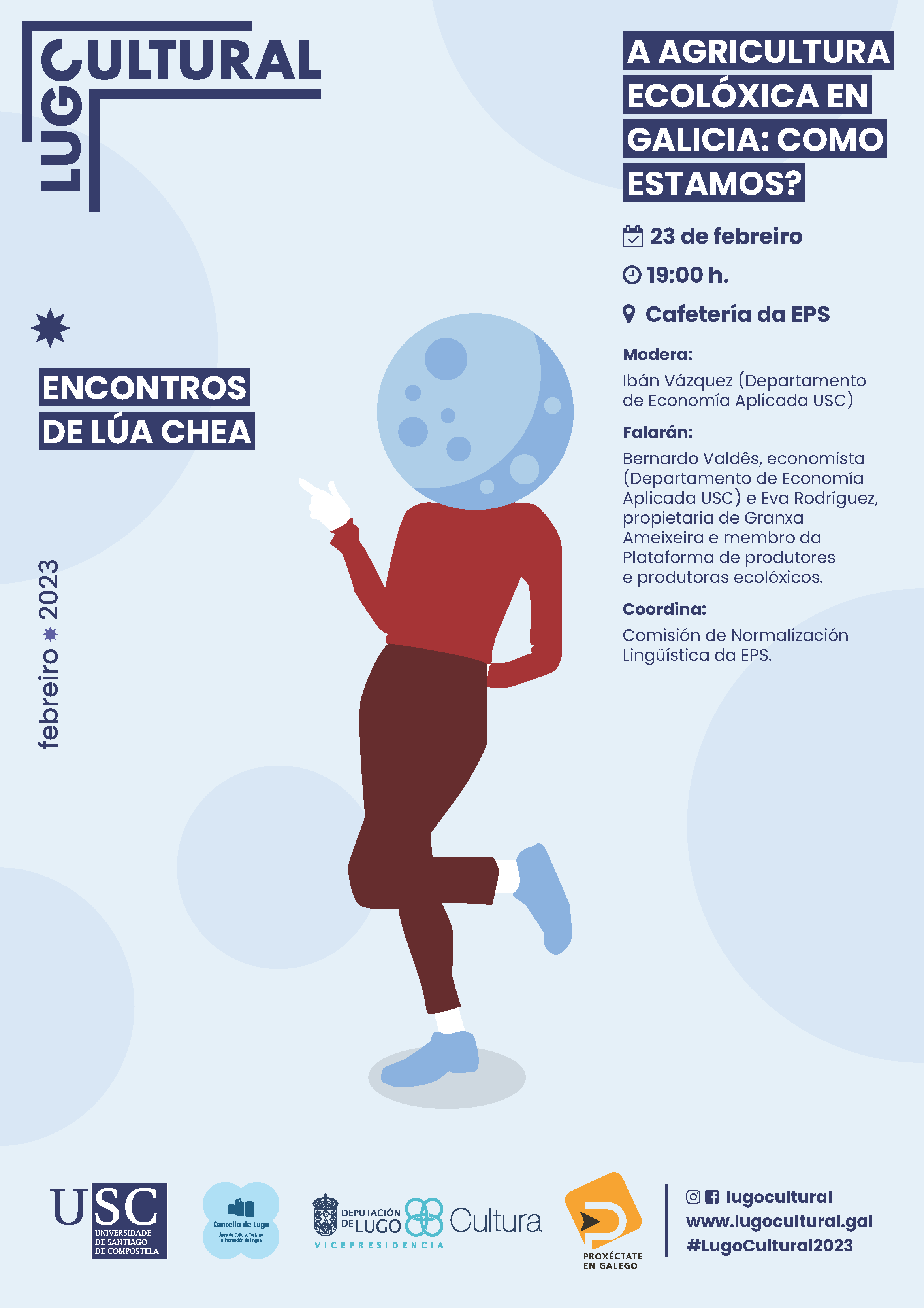 A temática escollida para esta primeira sesión dos Encontros de Lúa Chea 2023, un ciclo incluído por vez primeira na programación artellada ao abeiro do convenio Lugo Cultural, que conta con financiamento da USC, Concello de Lugo e Deputación Provincial de Lugo, responde á necesidade de responder ás preocupacións da cidadanía respecto da calidade da da sustentabilidade dos alimentos, ademais de afondar sobre as protencailidades que a produción ecolóxica ten en Galicia, así como sobre as pexas que lastran o seu crecemento.