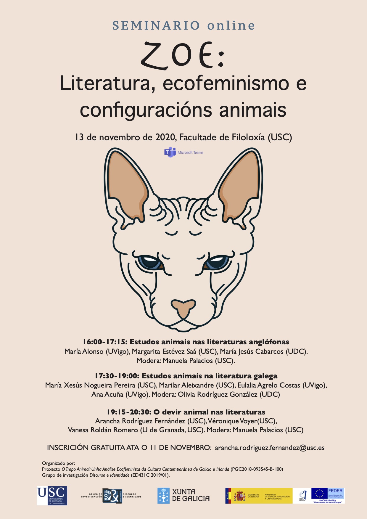 O proxecto de investigación ‘O Tropo Animal' e o GRC 'Discurso e Identidade’ impulsa o vindeiro día 13 de novembro, en horario de tarde, o seminario en liña ‘ZOE: Literatura, ecofeminismo e configuracións animais’, no que participará persoal docente e investigador das tres universidades galegas.