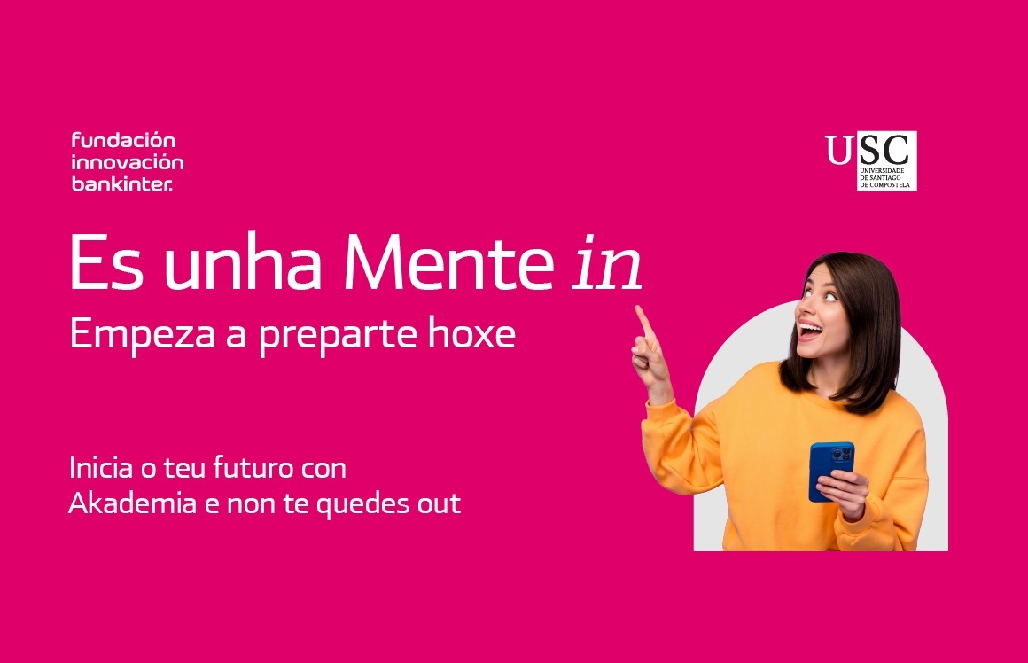 A Fundación Innovación Bankinter lanza unha nova edición do programa Akademia para alumnado da USC, unha iniciativa innovadora con docentes de referencia internacional que axudará a que o estudantado faga fronte ao seu futuro “levando a súa carreira ao seguinte nivel”, explican. O alumnado inscrito aprenderá a analizar, interpretar e ollar as tendencias do futuro ademais de “vivir unha experiencia de crecemento para a súa vida profesional e persoal, así como aprender a crear un algoritmo de intelixencia artificial dende cero”, explican dende a organización.
