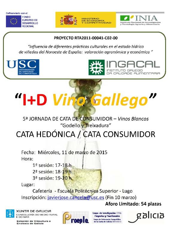 Esta actividade está promovida polo profesor e investigador da USC Javier José Cancela no marco do proxecto de investigación ‘Influencia de diferentes prácticas culturais no estado hídrico de viñedos do Noroeste de España: valoración agronómica e económica’, que conta con financiamento do Fondo Europeo de Desenvolvemento Rexional a través do Instituto Nacional de Investigación e Tecnoloxía Agraria e Alimentaria (INIA) A xornada de cata, cuxo aforo está limitado a un máximo de 54 persoas, desenvolverase na cafetería do centro universitario lugués de 17.00 a 20.00 horas, en tres quendas dunha hora de duración. As persoas interesadas poden formalizar a súa inscrición de balde ata o 10 de marzo a través do enderezo de correo electrónico javierjose.cancela [at] usc.es (javierjose[dot]cancela[at]usc[dot]es).