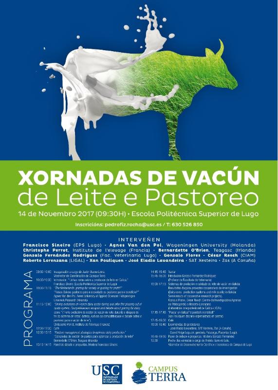 O Campus Terra da USC celebrará o 14 de novembro na Escola Politécnica Superior de Enxeñaría as xornadas técnicas ‘Vacún de leite e pastoreo’, un foro aberto á participación de produtores e demais profesionais ligados ao sector, no marco do que varios relatores ofrecerán a súa visión respecto das vantaxes que pode reportar o pastoreo fronte á actual crise de prezos do leite.