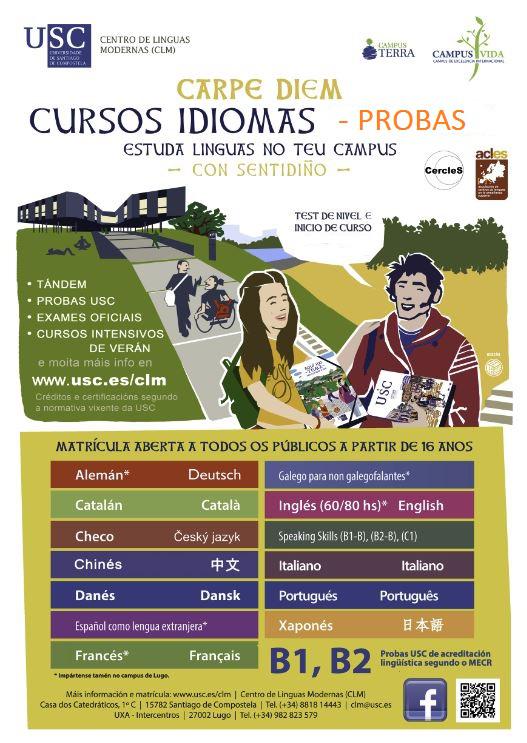 O Centro de Linguas Modernas (CLM) mantén aberto o prazo de matrícula dos seus cursos para o segundo semestre así como a inscrición nos test de nivel para aquelas persoas que teñan coñecementos previos dun idioma. No Campus de Santiago a oferta do segundo semestre inclúe cursos de alemán, catalán, checo, chinés, danés, francés, inglés, italiano, portugués, xaponés, galegos para non galego falantes e español como lingua estranxeira. Ademais destas dúas últimas, no Campus de Lugo a oferta contempla tamén alemán, francés e inglés.