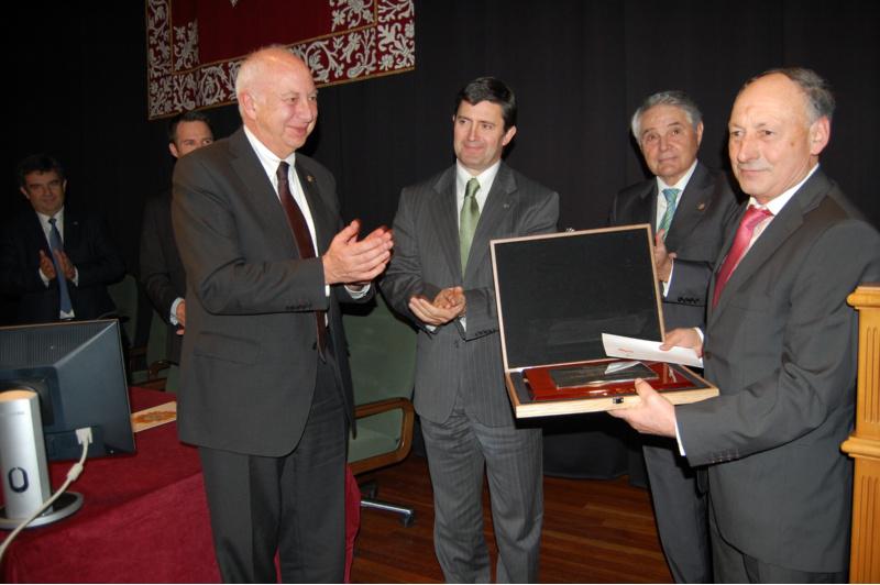 O presidente da Asociación de Criadores de Gando Vacún Selecto de Raza Rubia Galega (ACRUGA), César Dorado Pin, recolleu este venres 4 de febreiro o décimo primeiro Premio Aresa de Desenvolvemento Rural, promovido pola empresa luguesa Aresa e a Universidade de Santiago de Compostela, nun concorrido acto que tivo lugar no Auditorio da Facultade de Veterinaria de Lugo no que participaron unhas 500 persoas. A cerimonia estivo presidida polo reitor da USC, Juan Casares Long, e contou coa presenza dos membros do xurado desta edición, composto polo propio reitor da USC; o presidente do grupo Aresa, Álvaro Rodríguez Eiras; o vicerreitor de Coordinación e Planificación do Campus de Lugo, Pedro García Herradón; o vicerreitor de Investigación da Universidade de Murcia, Juan María Vázquez Rojas; e o actual director xeral de Nanta, Gerd Botter, en substitución de Francisco Irazusta. Tamén estiveron presentes, entre outras autoridades, o conselleiro de Medio Rural, Samuel Juárez; o alcalde de Lugo, José López Orozco; a deputada provincial Regina Polín, e o subdelegado do goberno en Lugo, José Vázquez Portomeñe; a delegada da Xunta en Lugo, Raquel Arias, e outras personalidades do eido político, académico, empresarial e social de Galicia, vinculados moitos deles á economía do rural, así como varios dos premiados en edicións anteriores O galardón deste ano recoñece a traxectoria de Acruga e a súa contribución ao desenvolvemento da economía galega. Os membros do xurado valoraron, entre outros méritos, o crecemento do número de explotacións adscritas á ACRUGA, cunhas 57.000 cabezas que a converten na segunda raza bovina de carne autóctona de maior censo en España; a aposta do colectivo polo proxecto do Centro de Recría de novillas na Granxa Gayoso Castro a través dun convenio coa Deputación de Lugo; e a posta en marcha xunto con Ternera Gallega da marca ‘Carne de Rubia Galega’. Por outra parte, o xurado tamén destacou o traballo de ACRUGA con distintos centros de investigación, o seu labor de difusión da Rubia Galega no ámbito nacional e internacional, as súas tarefas de selección para a mellora da raza e a contribución ao mantemento da actividade agraria na comunidade galega. A Asociación de Criadores de Gando Vacún Selecto de raza Rubia Galega ten a súa sede na cidade de Lugo, capital dunha provincia con grande tradición gandeira, e ten como obxectivo a conservación e mellora do patrimonio xenético da Raza Rubia Galega dende a súa fundación en 1969. Nove candidaturas O Premio Aresa ao Desenvolvemento Rural, ao que este ano se presentaron un total de nove candidaturas, está dotado con dez mil euros. Recoñece e incentiva o I+D nos eidos agrícola e gandeiro como elementos fundamentais cara a mellorar a calidade de vida e o benestar das persoas que traballan na zona rural galega, con especial atención ás particularidades da economía luguesa, dando prioridade á sustentabilidade dos recursos naturais e ao respecto á natureza. No certame prémianse traballos de investigación, iniciativas emprendedoras ou traxectorias profesionais. Conferencia ‘Crise Económica, Demografía e Territorio’ No transcurso do acto, o catedrático de Fundamentos da Análise Económica da Universidade de Santiago de Compostela, Alberto Meixide Vecino, pronunciou a conferencia titulada ‘ Crise Económica, Demografía e Territorio’ na que fixo unha pormenorizada análise da conxuntura social e económica no contexto da nosa comunidade autónoma. No seu relatorio, Meixide Vecino, analizou a heteroxénea distribución dos fenómenos da crise, o envellecemento poboacional e o tecido produtivo dentro do territorio galego. Na súa reflexión, destacou a importancia de articular as medidas e estratexias dos próximos anos en torno a estes condicionantes territoriais dende unha perspectiva conxunta. Na súa análise, o catedrático da USC presentou unha análise da crise demográfica e económica por concellos, incluído datos coma os do desemprego ou pirámides poboacionais.