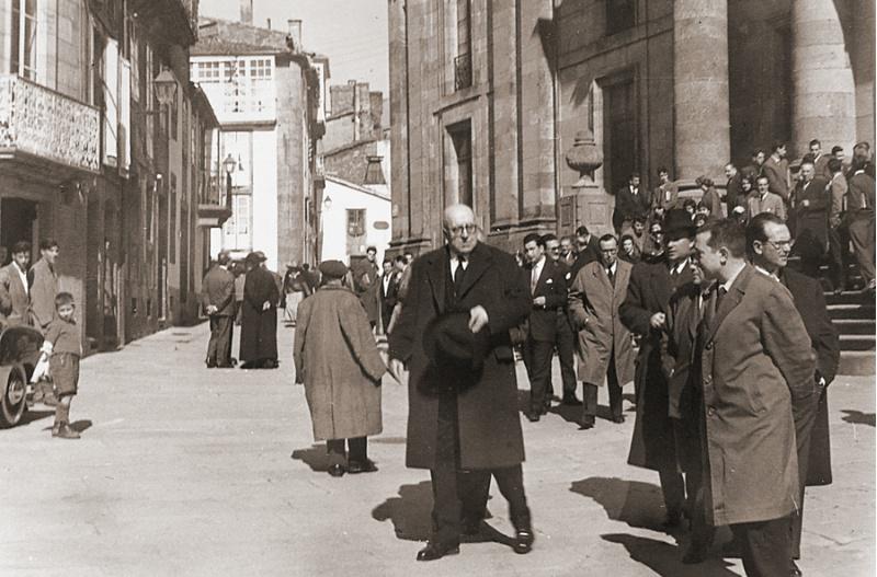 Otero Pedrayo á saída do discurso pronunciado en marzo de 1958 na Facultade de Xeografía e Historia