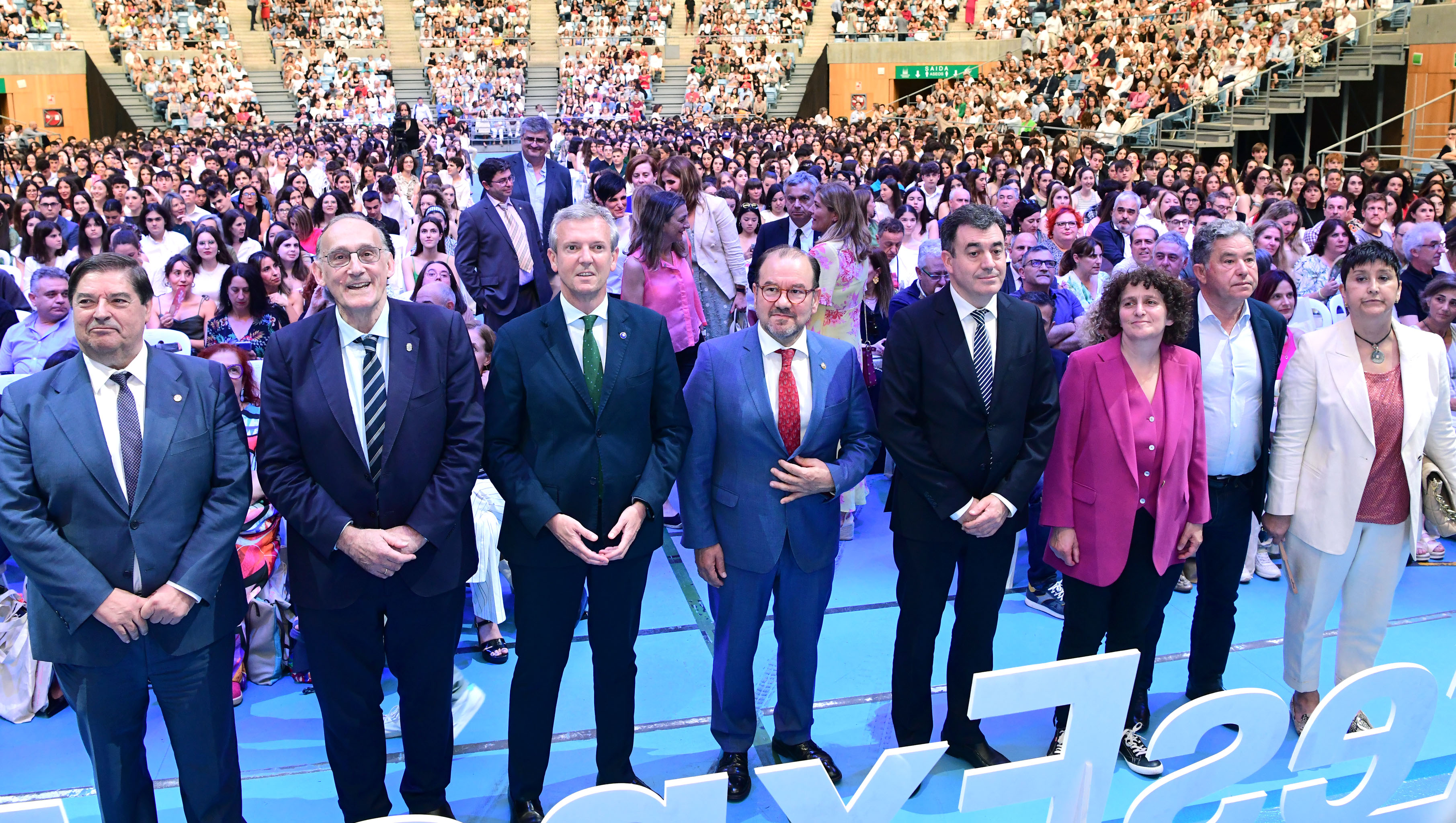 O acto de entrega contou tamén coa participación de Dulce Mª García Mella, secretaria xeral da USC; Pilar Murias Fernández, vicerreitora de Estudantes e Cultura da USC; Francisco J. Fraga López, vicerreitor de Organización Académica e do Campus de Lugo da USC; Natalia Caparrini Marín, vicerreitora de Estudantado e Empregabilidade da UVigo; María Jesús Movilla Fernández, vicerreitora do Campus de Ferrol e Responsabilidade Social da UDC; Olga López Rocamonde, concelleira de Benestar Social, Inclusión e Persoas Maiores do Concello de Lugo; Román Rodríguez González, conselleiro de Cultura, Educación, Formación Profesional e Universidade; Miguel Anxo Fernández Lores, alcalde do Concello de Pontevedra; Mª del Carmen Pieltain Fernández, concelleira delegada de Mobilidade e Seguridade do  Concello de Ferrol; María José Lombardía Cortiña, vicerreitora de Estudantes, Participación e Empregabilidade da UDC; Alfonso Lago Ferreiro, vicerreitor de Titulacións e Innovación Docente da UVigo; e Susana Reboreda Morill, vicerreitora de Extensión Universitaria da UVigo. Entre alumnado, profesorado e familiares, o acto congregou a arredor de 4.000 persoas.