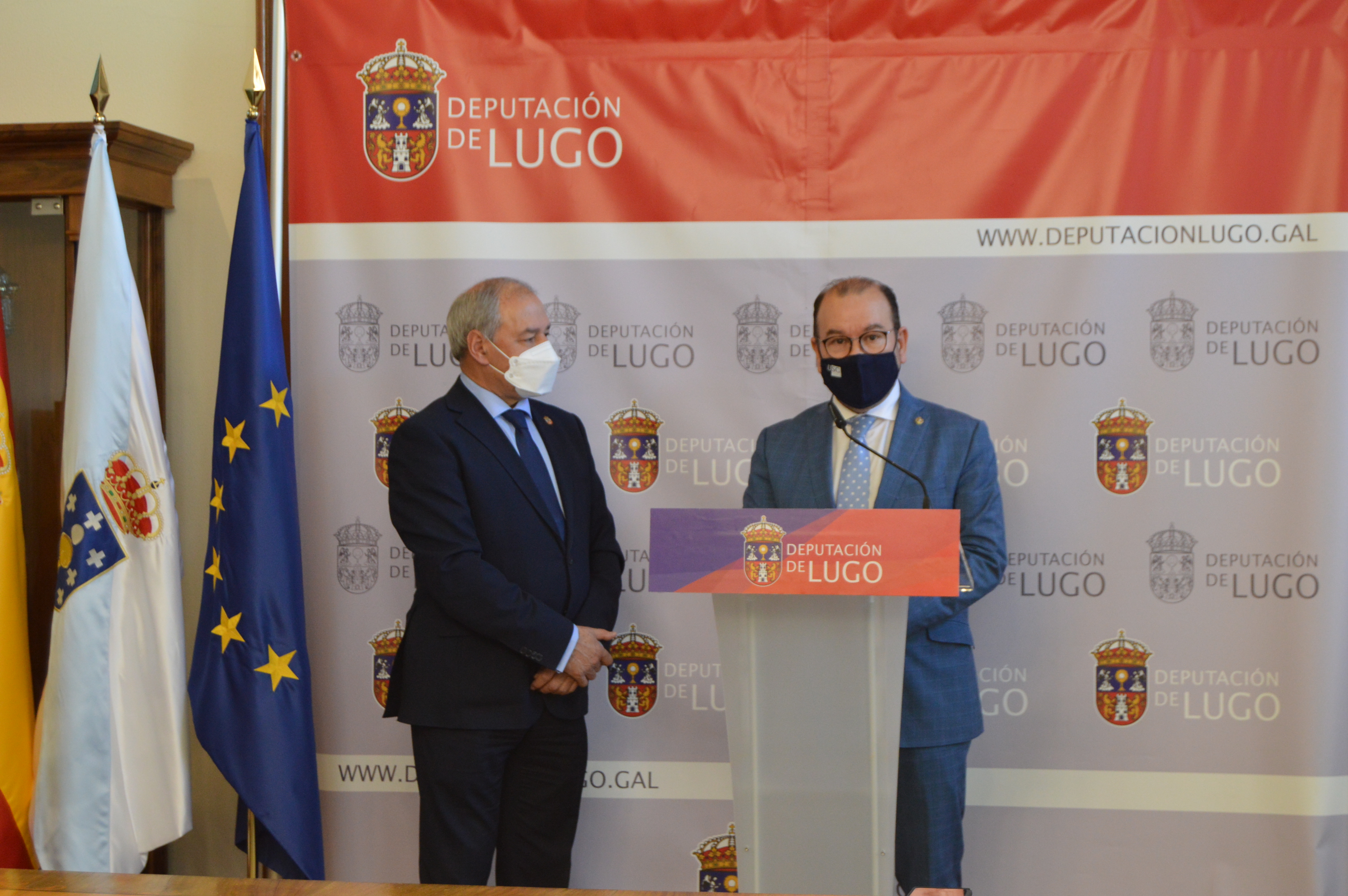 O reitor da USC, Antonio López Díaz, e o presidente da Deputación Provincial de Lugo, José Tomé Roca, asinaron este venres no lugués Pazo de San Marcos un novo convenio entre ambas entidades, en virtude do que o alumnado universitario poderá realizar prácticas na institución provincial. Este acordo, segundo se puxo de manifesto no acto de sinatura, permite vehicular a tramitación das prácticas dos estudantes da USC de todas as titulacións oficiais de grao e mestrado en calquera dos servizos da institución provincial.