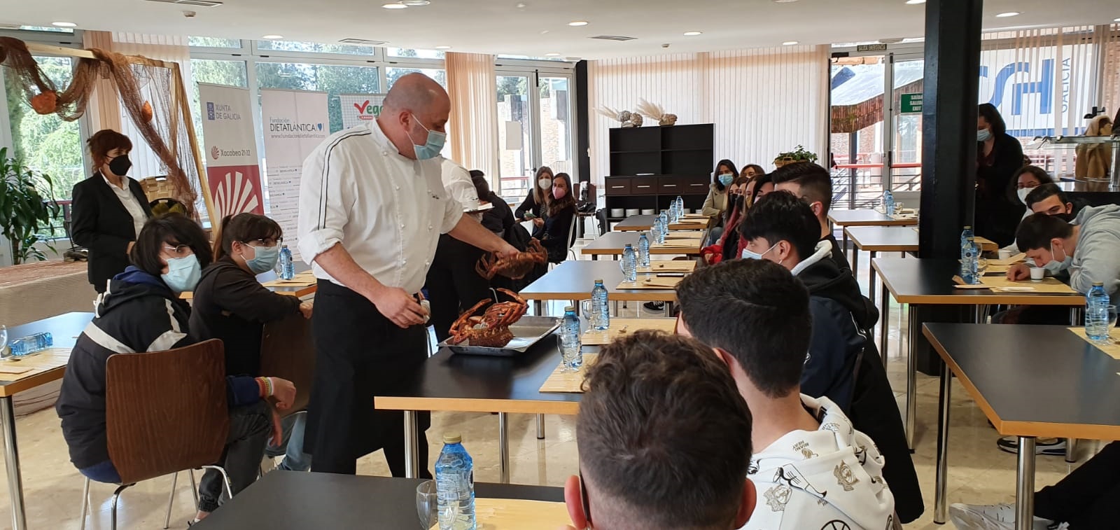 Os  destinatarios desta acción, enmarcada na liña de alimentación e saúde do Programa Xacobeo 2021-22 da Xunta de Galicia, son alumnos de Bacharelato e Formación Profesional de diferentes institutos galegos, que durante os próximos meses visitarán o Centro, asistirán a unha sesión informativa sobre ‘Alimentación Saudable e Dieta Atlántica’, de man de especialistas neste estilo alimentario, e participarán nun taller de cociña, con degustación posterior, de pratos elaborados seguindo os criterios atlánticos. A primeira das visitas correspondeu aos 40 alumnos de 1º de bacharelato do IES Rosalía Mera de A Coruña.