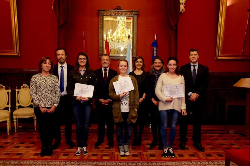 Tres rapazas representarán a Galicia en xuño na Olimpíada Estatal de Economía tras competir onte na sexta edición da fase galega que cada ano ten lugar na Facultade compostelá de Económicas. A primeira clasificada foi Mercedes Diéguez Paniagua, da Compañía de María de Vigo; o segundo posto foi para Amalia Álvarez Vázquez, do IES Isaac Díaz Pardo de Sada; e en terceiro lugar quedou Sara Baamonde González, tamén da Compañía de María de Vigo. A entrega de premios desta edición, a de maior éxito ata agora con 99 estudantes inscritos, tivo lugar este xoves no Concello de Santiago nun acto no que participaron o alcalde Agustín Hernández; o vicerreitor de Internacionalización da USC, Carlos Salgado; o presidente do Colexio de Economistas de Galicia, Miguel Vázquez; a concelleira de Educación, Maite Cancelo; e a decana do centro, Emilia Vázquez.