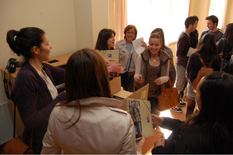 Os rapaces foron agasallados con carpetas da USC antes de iniciar o percorrido polos centros do Campus de Lugo