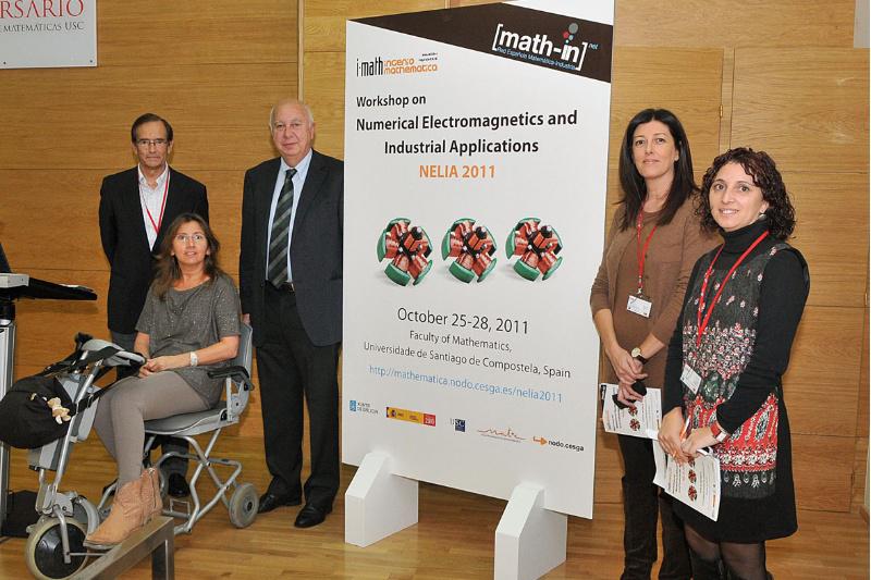 Unha trintena de especialistas de varios países reúnense ata o 28 deste mes na Facultade de Matemáticas para asistir ao Workshop on numerical electromagnetics and industrial applications (NELIA 2011) que organizan docentes do Departamento de Matemática Aplicada da USC baixo o patrocinio do proxecto Consolider Ingenio Mathematica. O encontro inaugurouno este martes o reitor Juan Casares Long. A simulación numérica xoga na actualidade un papel moi importante na enxeñaría eléctrica e nas telecomunicacións para deseñar e operar un gran número de dispositivos e procesos industriais como son as máquinas eléctricas, os sistemas de quentamento por indución, os fornos de microondas, os transformadores, os teléfonos Móbiles ou a transmisión por fibra óptica. As ecuacións matemáticas que modelan os fenómenos electromagnéticos resólvense mediante métodos numéricos con axuda de ordenadores, o que permite facer experimentos virtuais de gran interese para a optimización dos deseños. O workshop trata sobre os últimos avances neste campo e inclúe ademais presentacións sobre aplicacións industriais da simulación electromagnética.