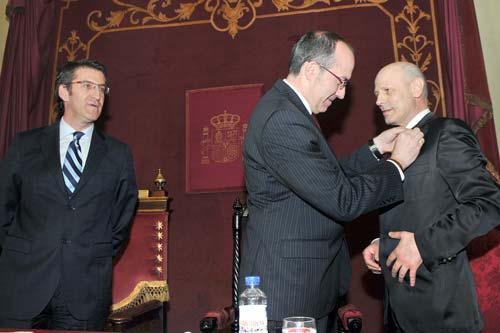 O reitor Senén Barro impúxolle a Insignia a Lamazares en presenza do presidente da Xunta, Alberto Núñez Feijóo