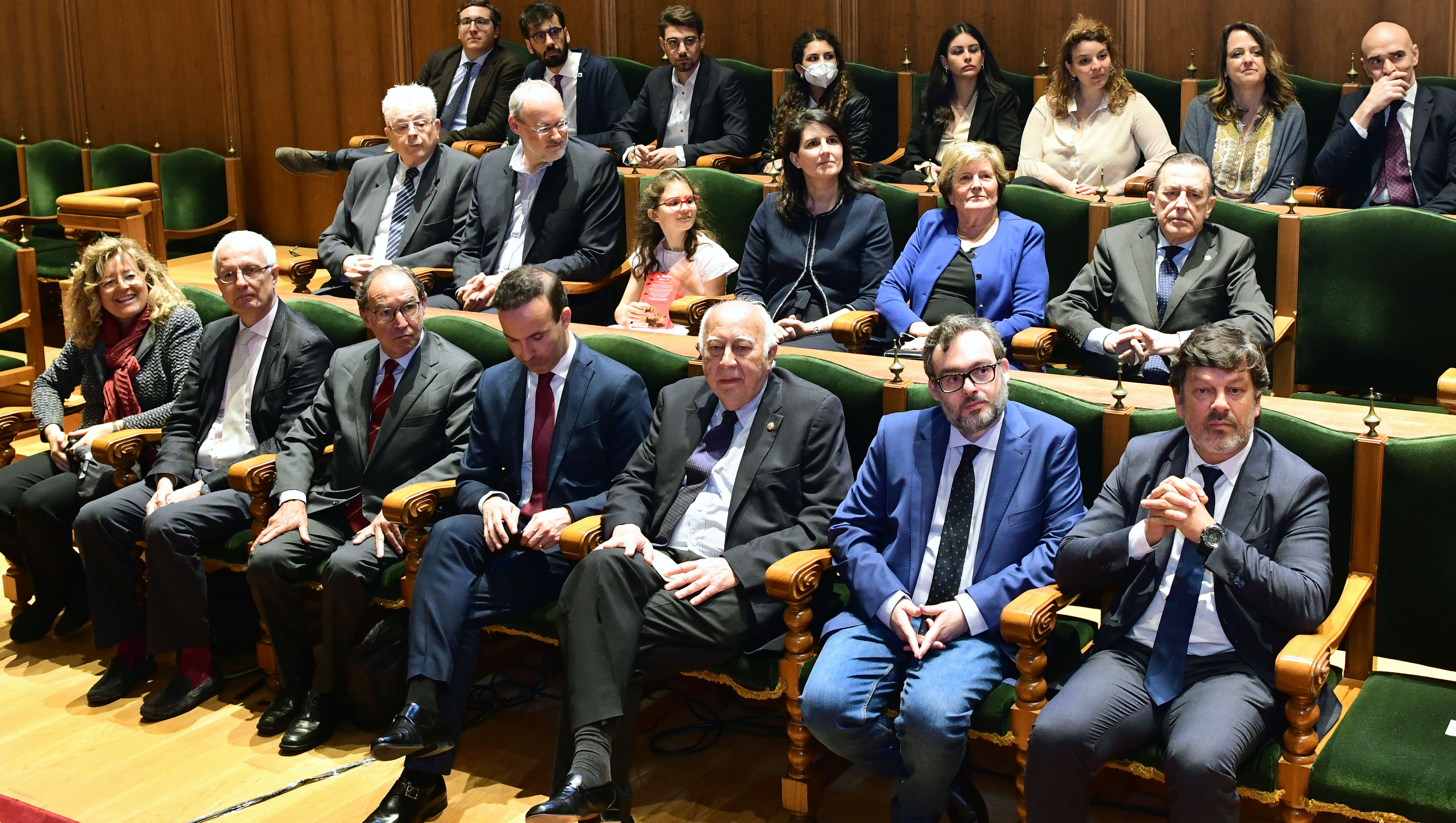A Insignia de Ouro é o máximo recoñecemento que a USC outorga a aquelas persoas que sobresaen dun xeito especial nos servizos prestados á institución, ben sexa pola súa continuidade e duración, ou pola súa especial relevancia e significación. Baixo esta premisa, o reitor Antonio López impuxo este xoves 26, nun acto institucional que se desenvolveu no Colexio de Fonseca, as súas respectivas insignias aos profesores António Cândido Macedo de Oliveira, Giampaolo Rossi e Jean-Bernard Auby, polas súas achegas fundamentais para o avance da ciencia do Dereito Público e Administrativo.
